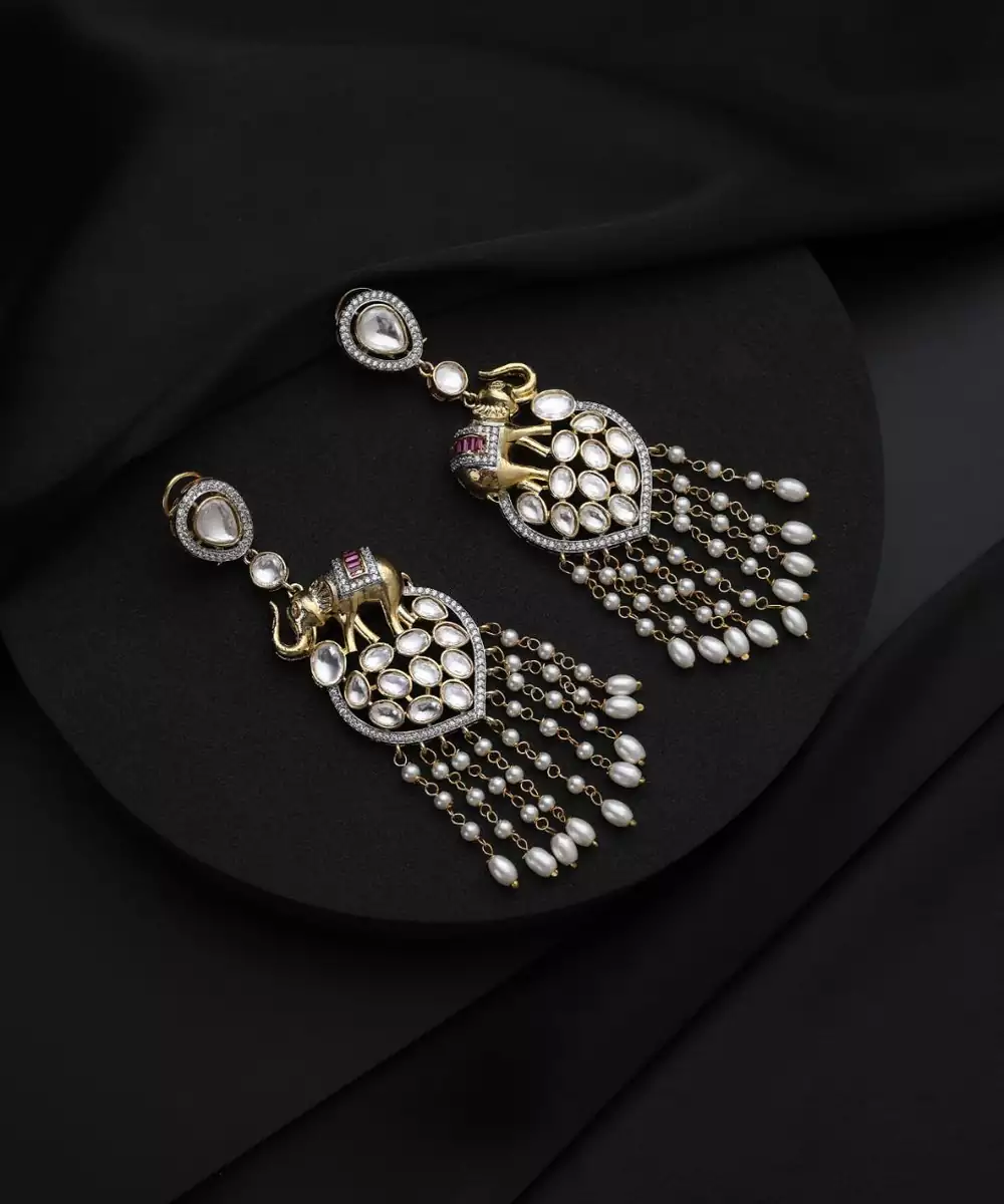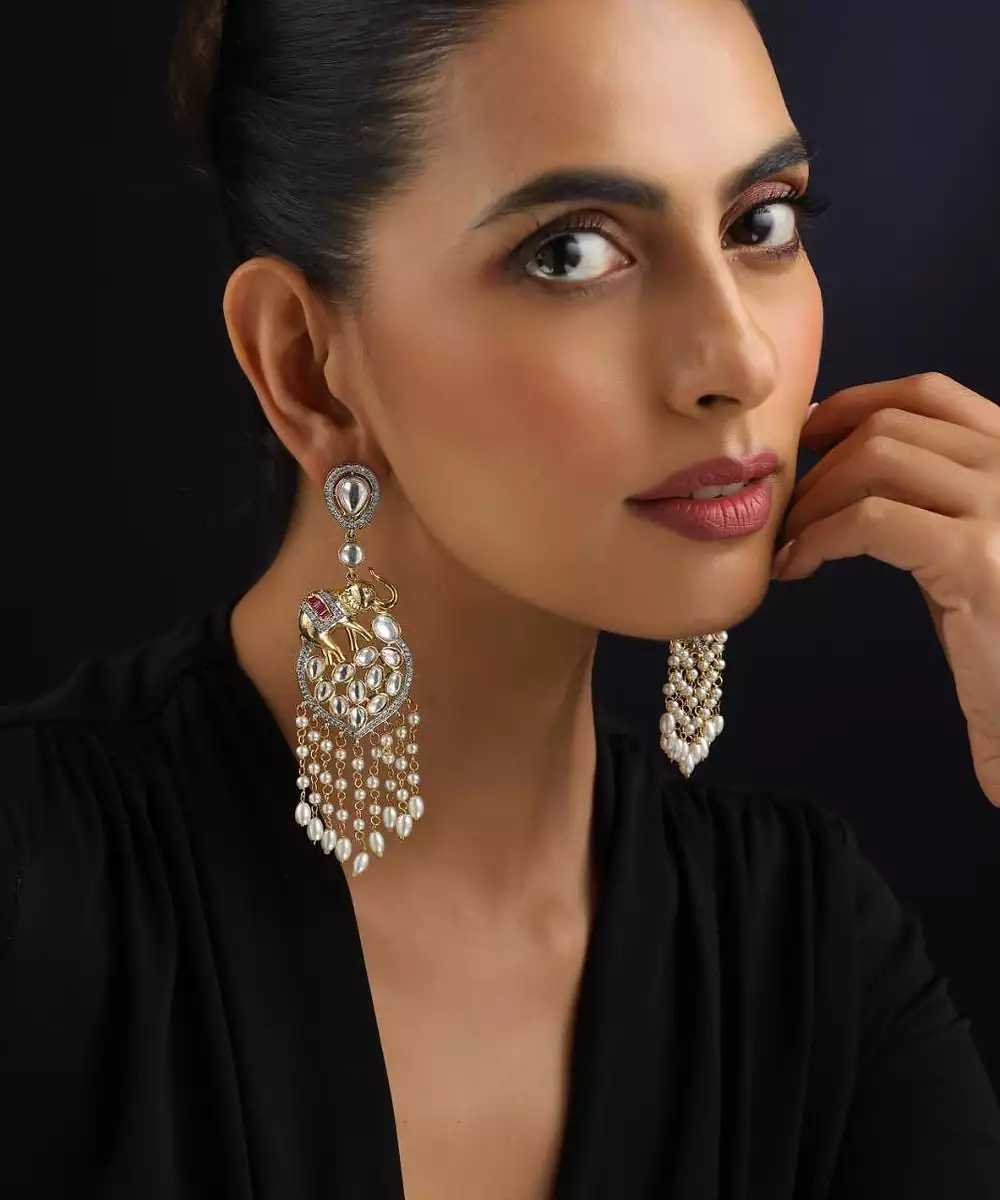 These Gold Plated White Polki Chandbalis Exude Timeless Elegance And Grace. Featuring Intricate Polki Work With Pristine White Stones, They Are Finished With Rich Gold Plating For A Luxurious Touch. Perfect For Weddings, Festive Occasions, And Celebrations, They Beautifully Complement Traditional Attire With Their Classic And Regal Design.