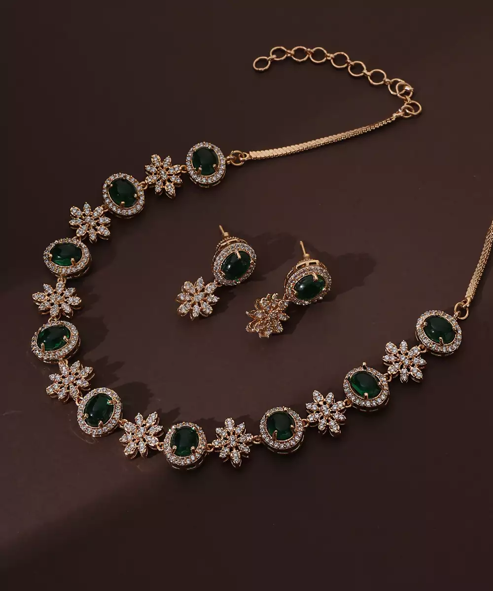 Green Zirconia Necklace Set Colour: Green Material:Brass Components:1 Necklace / 1 Pair Of Earrings