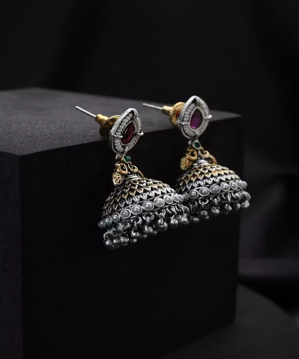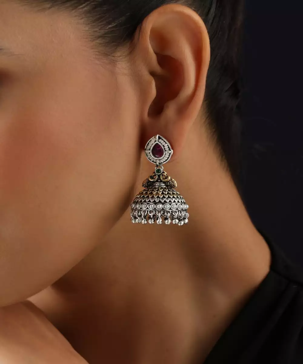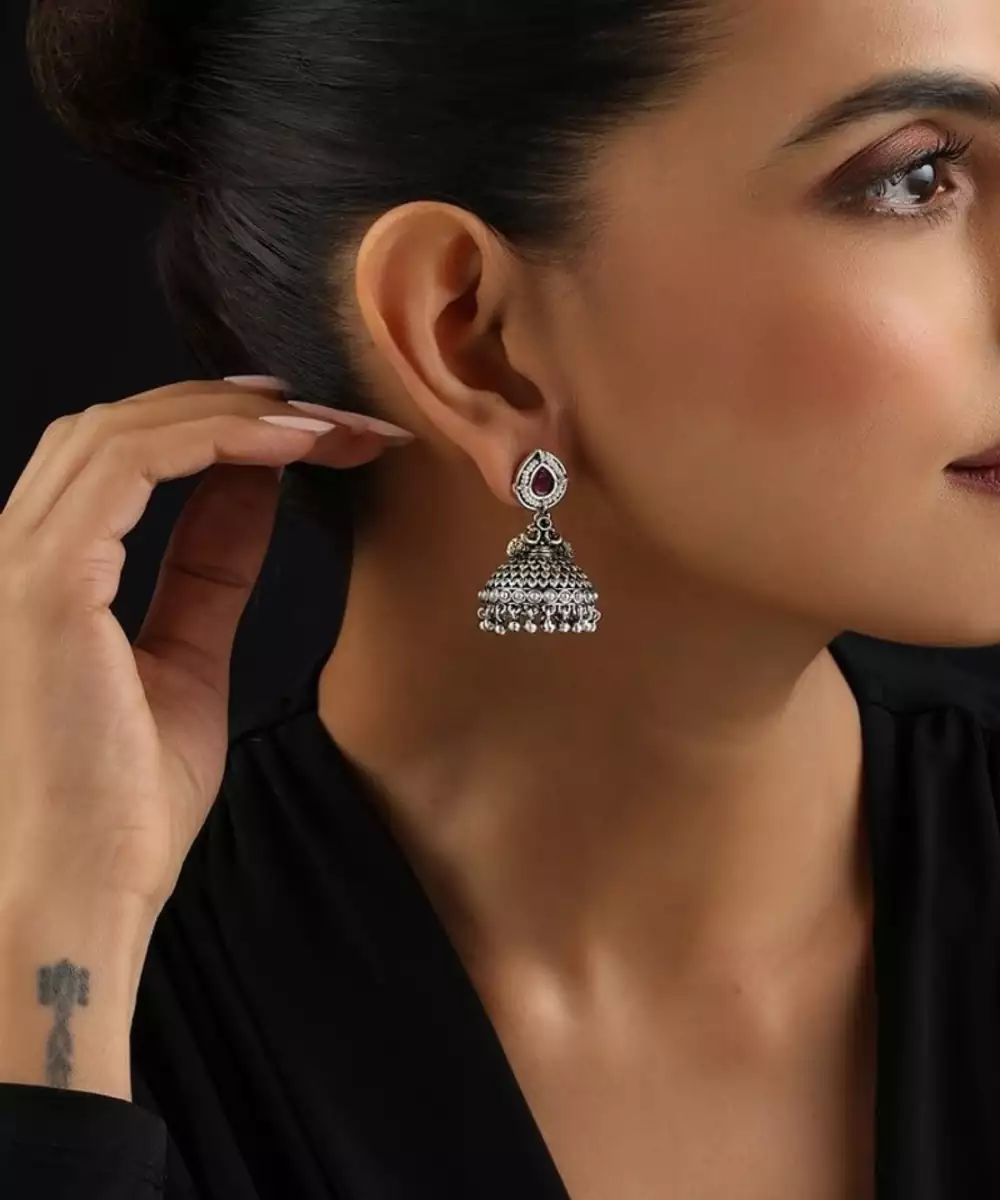 Grace Your Ears With The Elegant Charm Of These Silver Plated Kundan Jhumkas. The Brilliant Shine Of The Silver Provides A Stunning, Contemporary Backdrop For The Traditional Sparkle Of Meticulously Set Kundan Stones. These Jhumkas Offer A Perfect Blend Of Modern Sophistication And Classic Indian Design, Making Them A Versatile And Eye Catching Accessory For Any Occasion