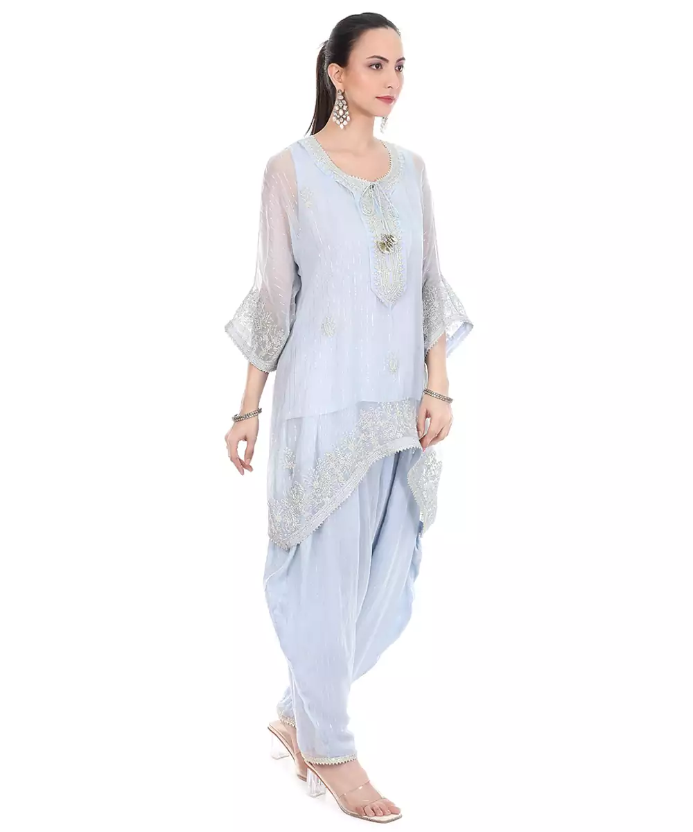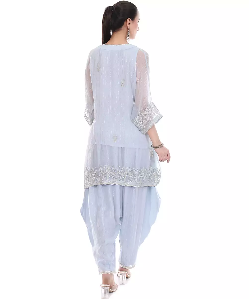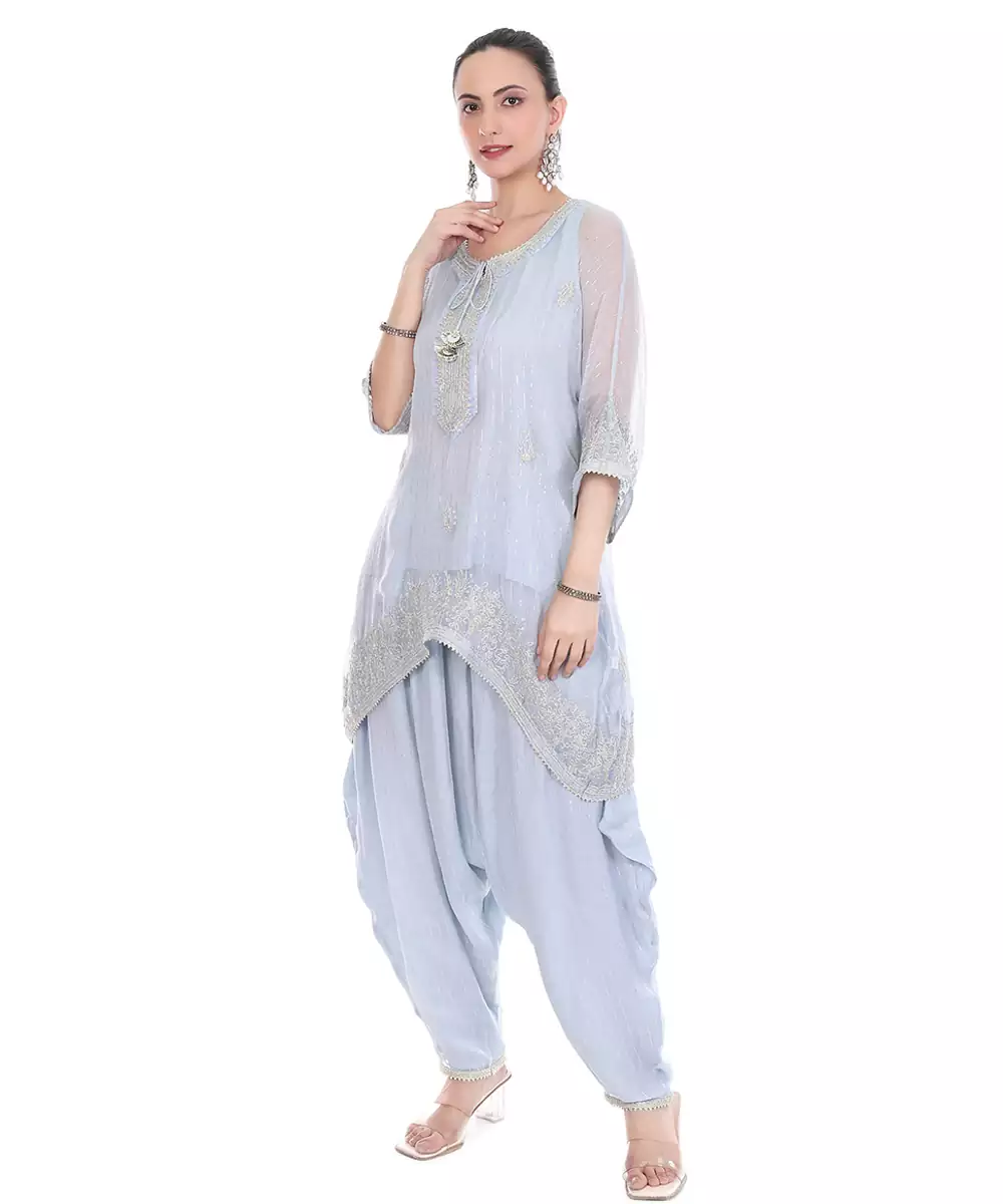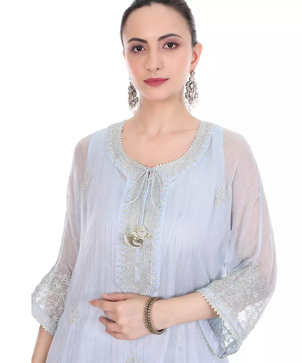This Blue Embroidered Lurex Kaftan Combines Rich Color With A Subtle Shimmer. The Intricate Embroidery Enhances Its Elegance, While The Relaxed Silhouette Ensures Comfort. Perfect For Festive And Occasion Wear, It Delivers A Graceful And Contemporary Ethnic Look With A Hint Of Glamour.