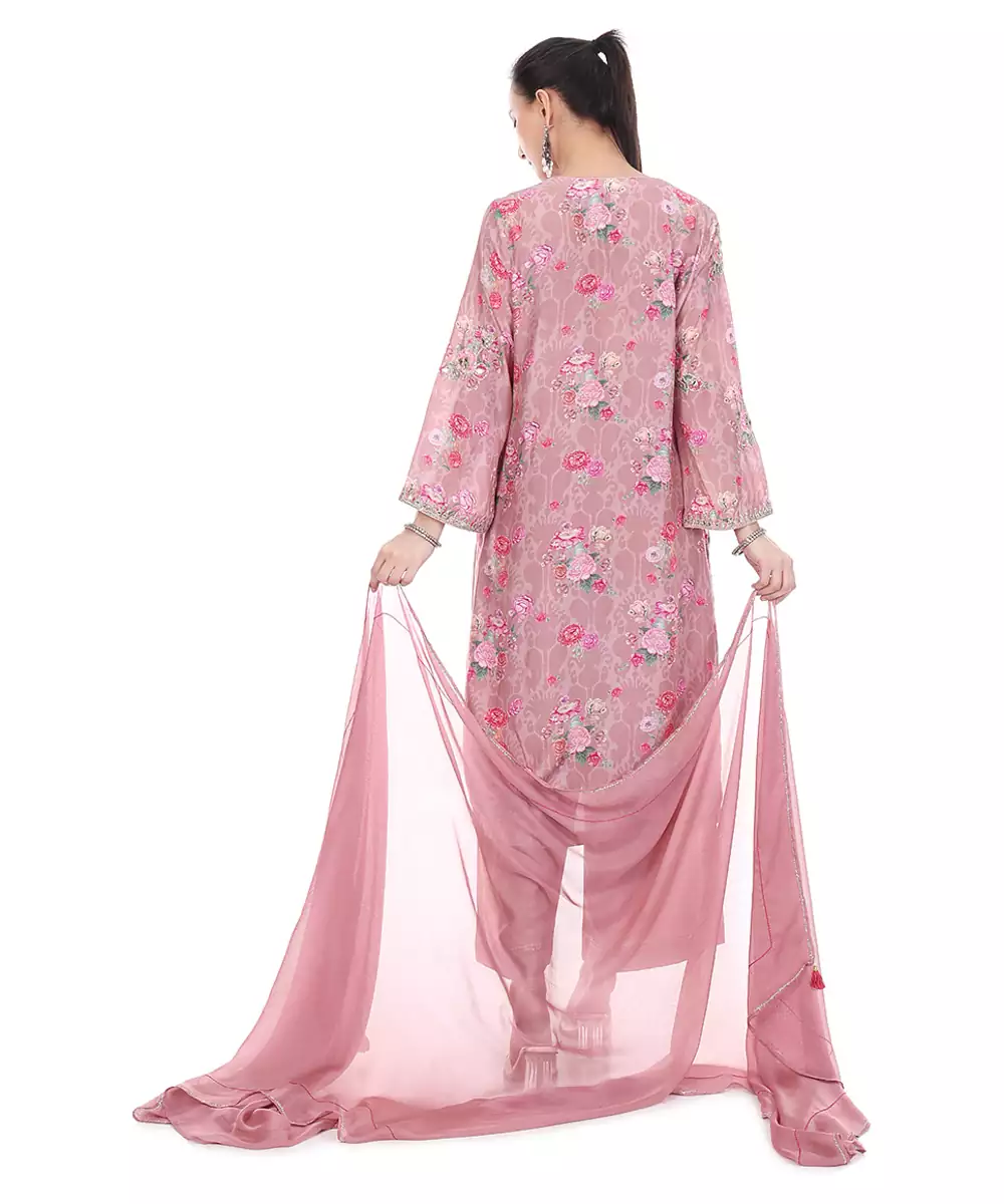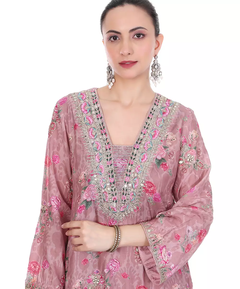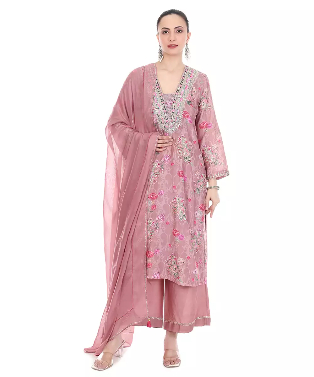 This Pink Embroidered Cotton Silk Kurta Set Blends Comfort With Subtle Luxury. The Fabric Offers A Soft Texture With A Slight Sheen, While The Delicate Embroidery Enhances Its Feminine Charm. Perfect For Festive Occasions, It Provides A Graceful And Elegant Look With A Balanced Blend Of Tradition And Modern Style.