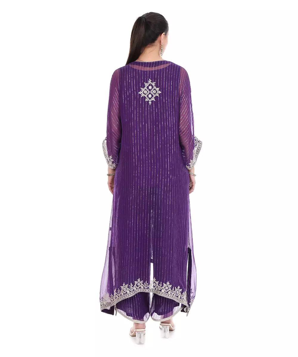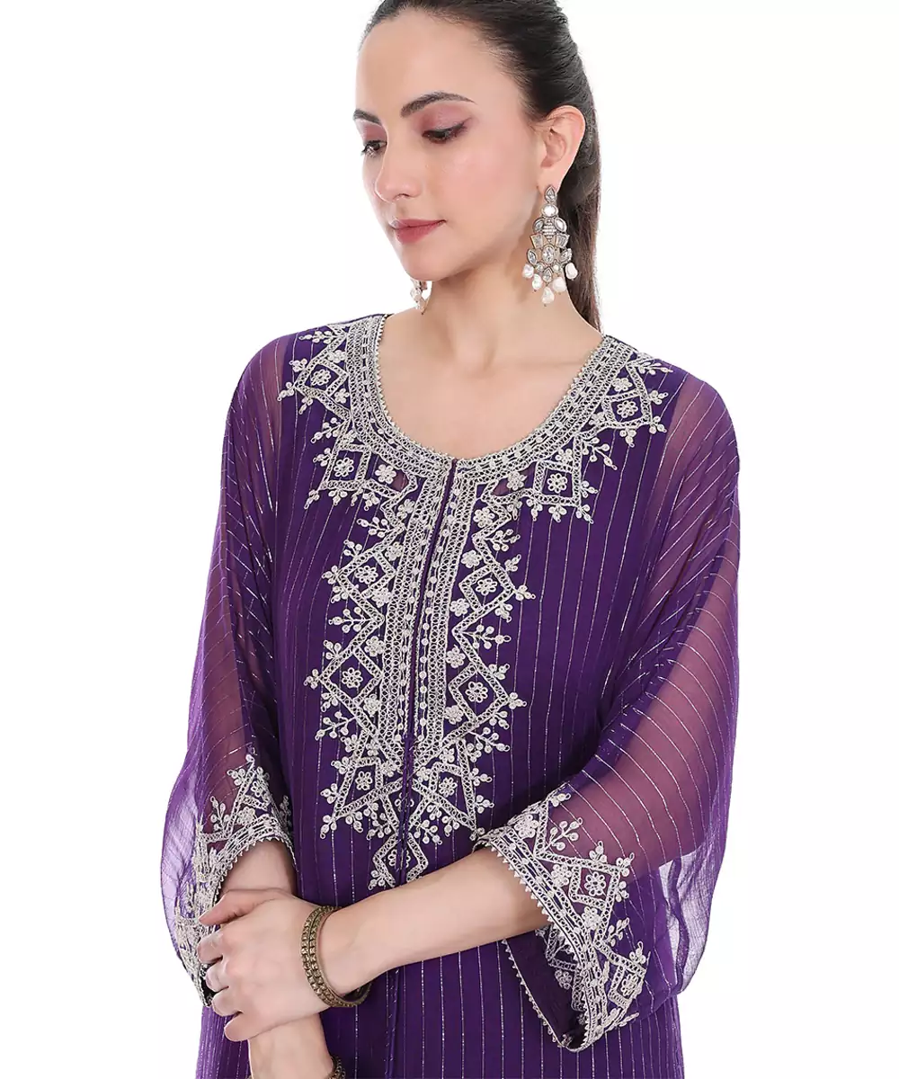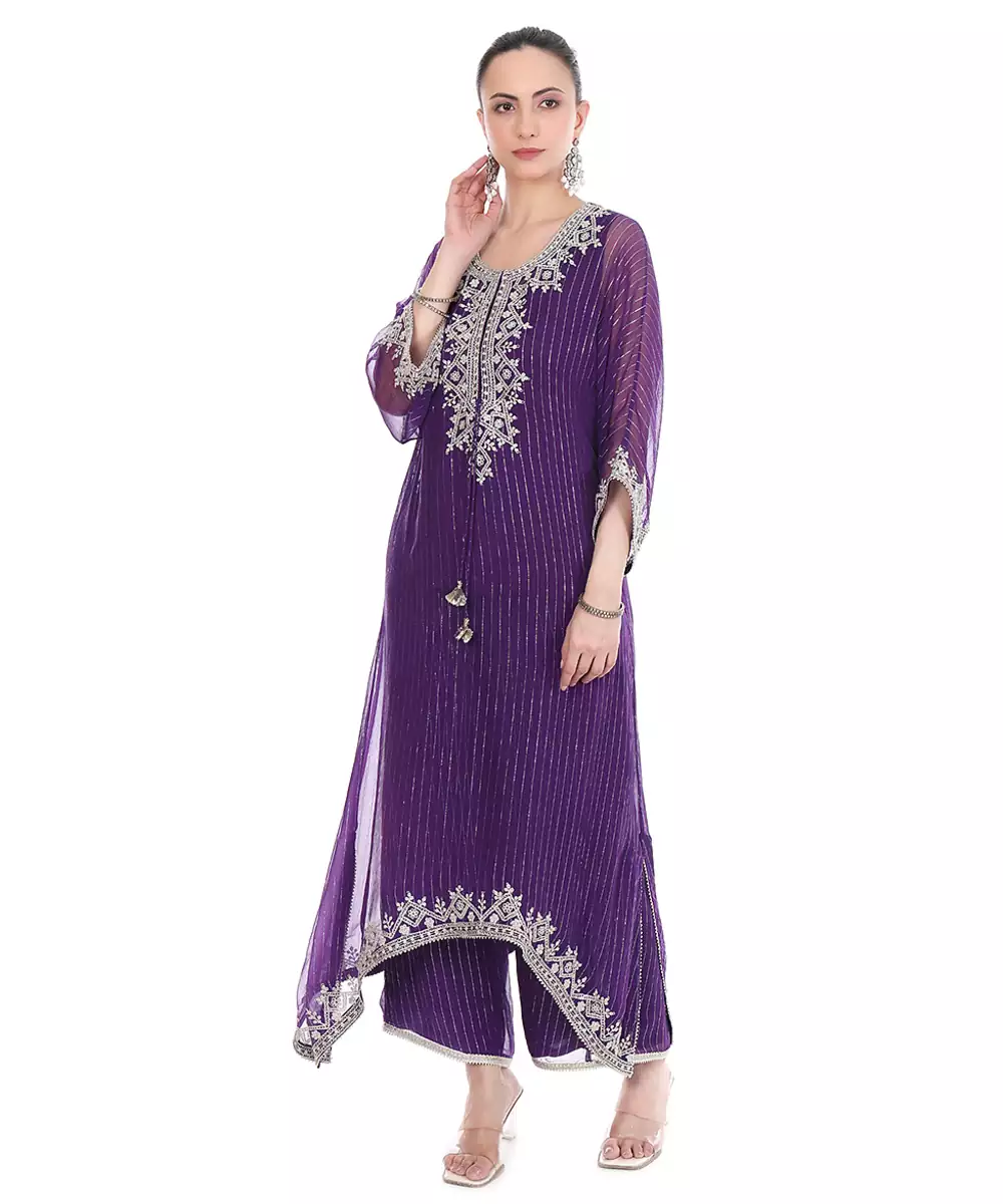 Purple Embroidered Lurex Kaftan