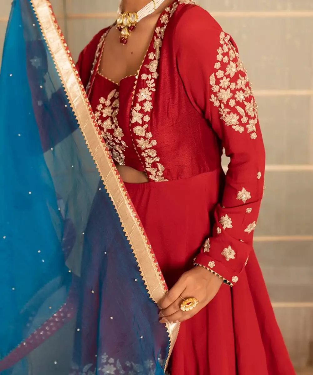 Featuring Embroidered Asymmetrical Kurta With Garara And Dupatta.