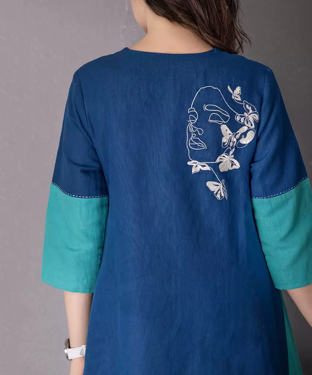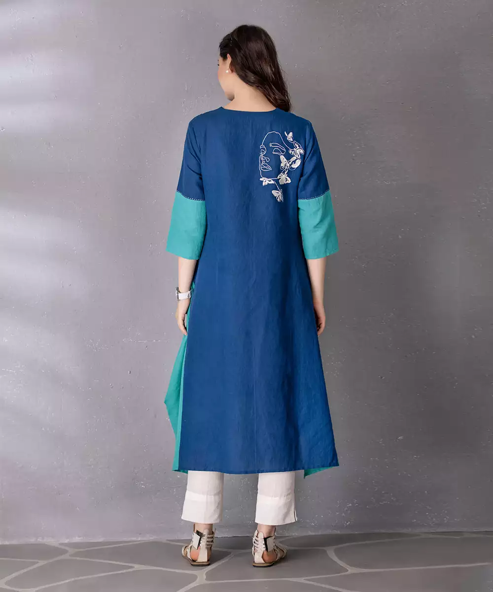 Featuring Turquoise Green & Mattise Blue Cotton Blue Tunic With Pant Set.