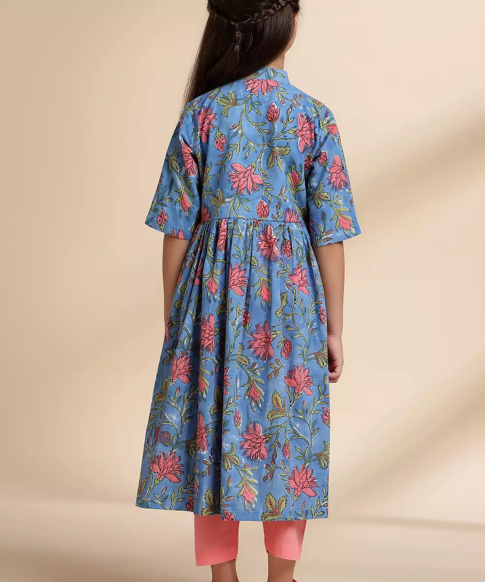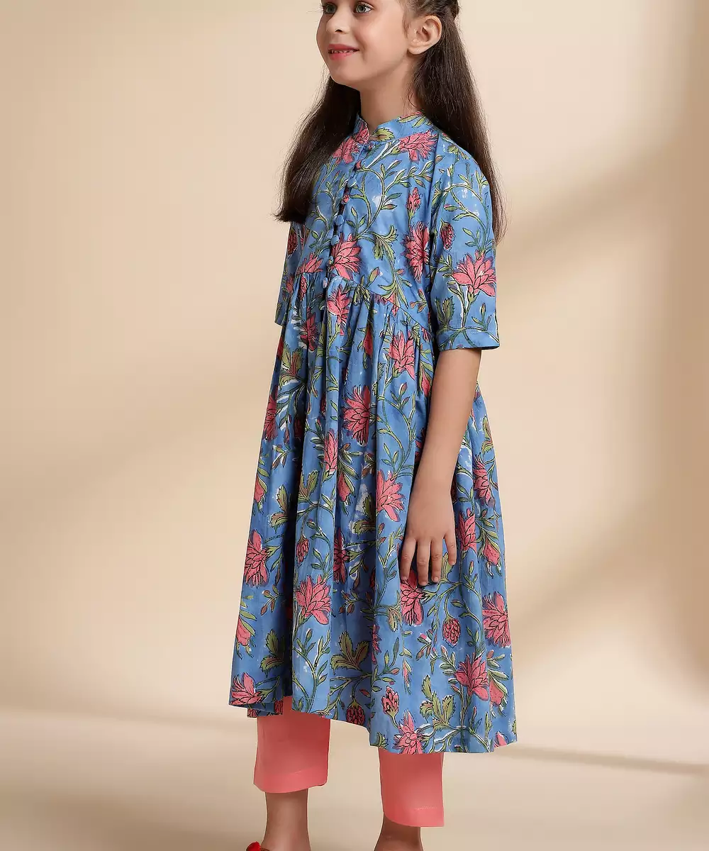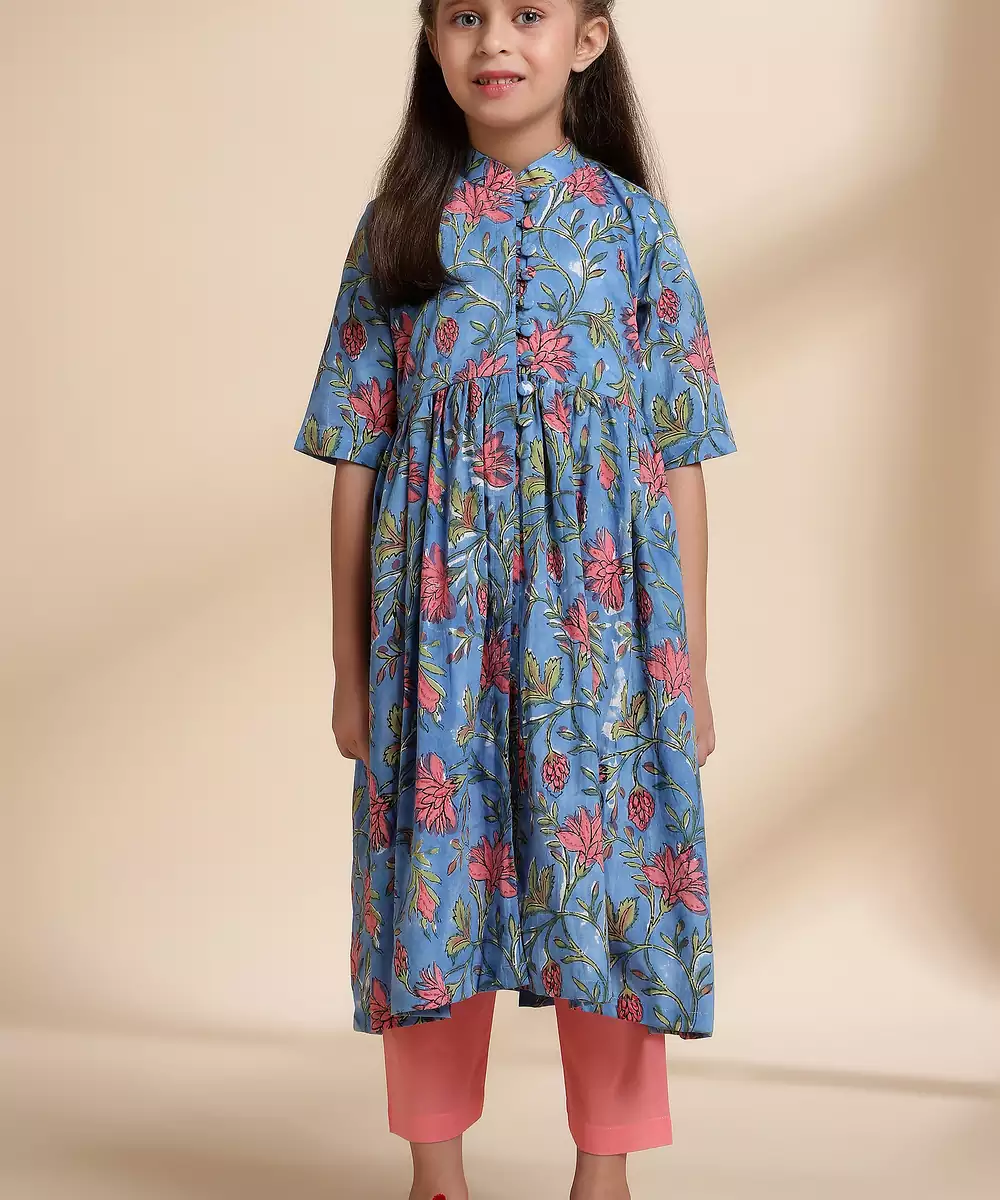 This Blue Printed Cotton Kurta Set Radiates Cheerful Elegance With Its Lively Patterns And Breathable, Soft Fabric. The Lightweight Cotton Ensures All Day Comfort, While The Vibrant Prints Add A Festive, Contemporary Charm. Perfect For Daytime Events, Celebrations, And Casual Gatherings, It Blends Effortless Style With Modern Ethnic Appeal.