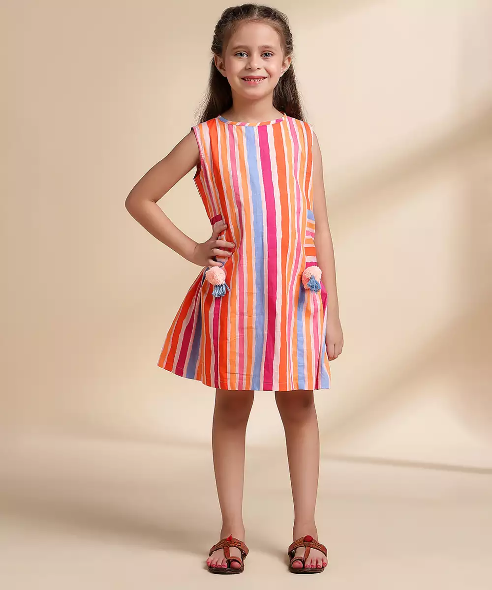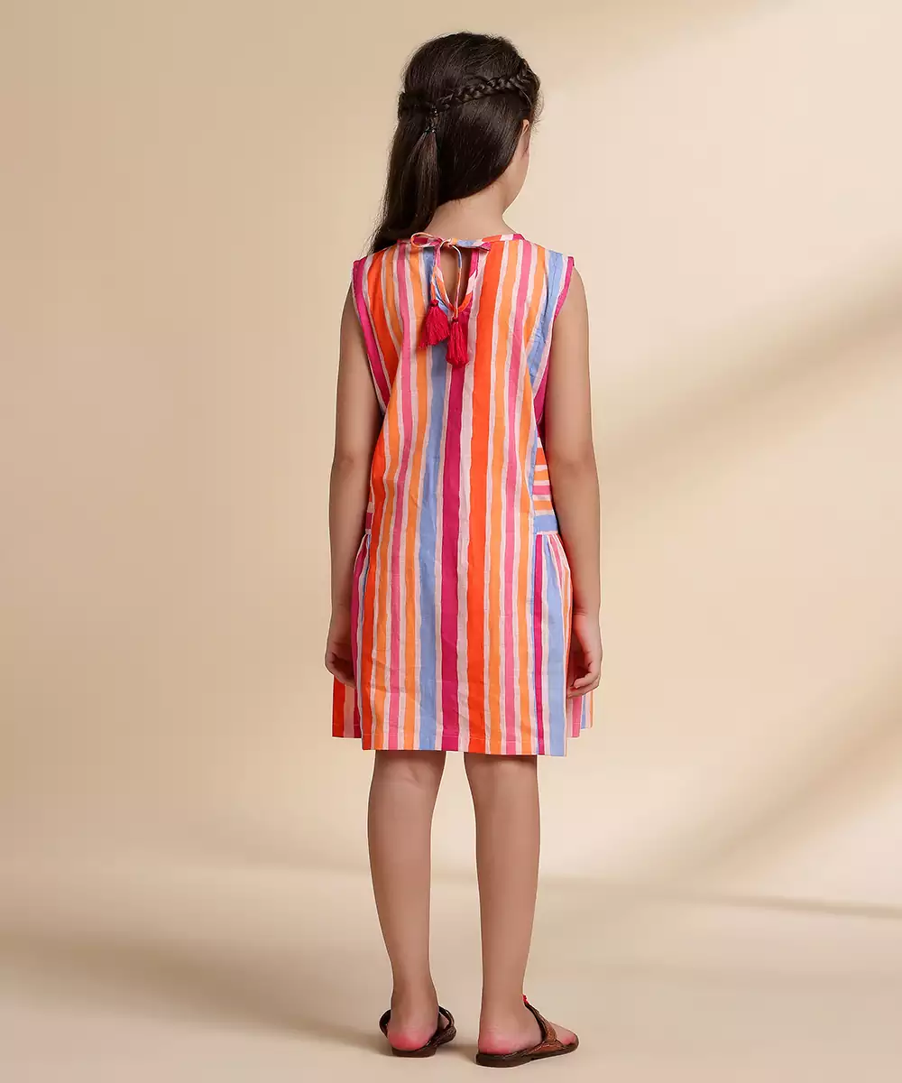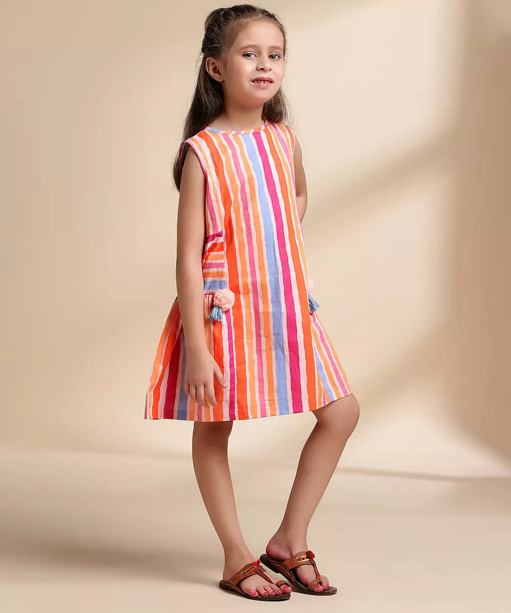 This Multicolor Printed Cotton Frock Exudes Playful Charm With Its Vibrant Patterns And Soft, Breathable Fabric. The Lightweight Cotton Ensures All Day Comfort, While The Lively Prints Add A Cheerful, Stylish Touch. Perfect For Casual Outings, Festive Occasions, And Everyday Wear, It Blends Comfort With Delightful, Effortless Elegance.