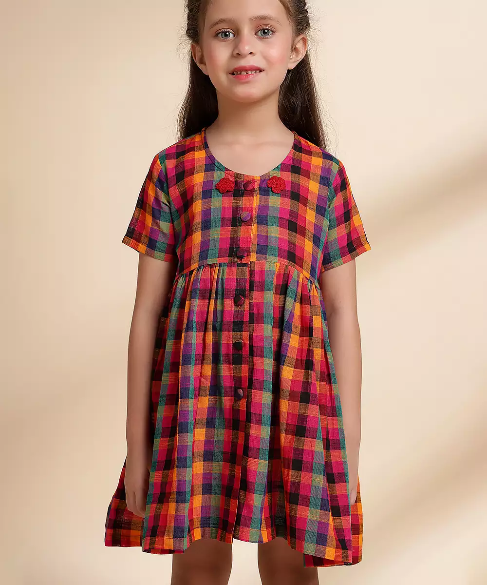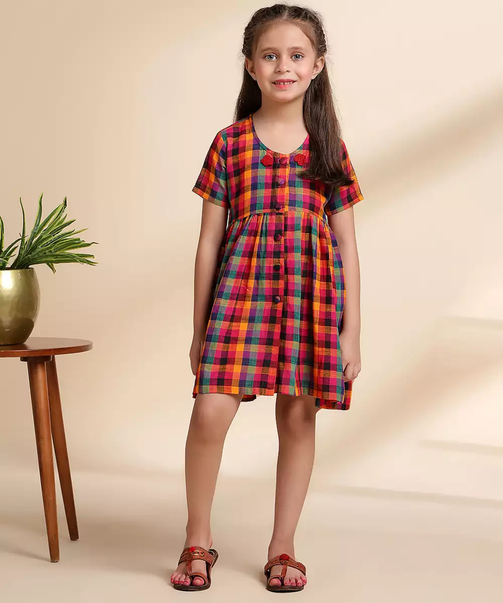 This Multicolor Printed Cotton Frock Exudes Playful Charm With Its Vibrant Patterns And Soft, Breathable Fabric. The Lightweight Cotton Ensures All Day Comfort, While The Lively Prints Add A Cheerful, Stylish Touch. Perfect For Casual Outings, Festive Occasions, And Everyday Wear, It Blends Comfort With Delightful, Effortless Elegance.