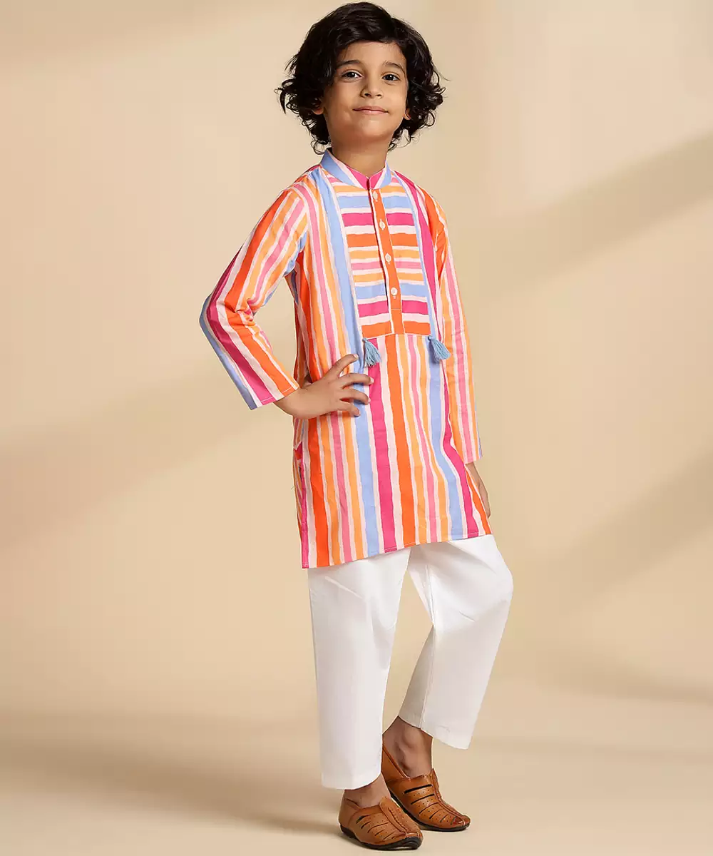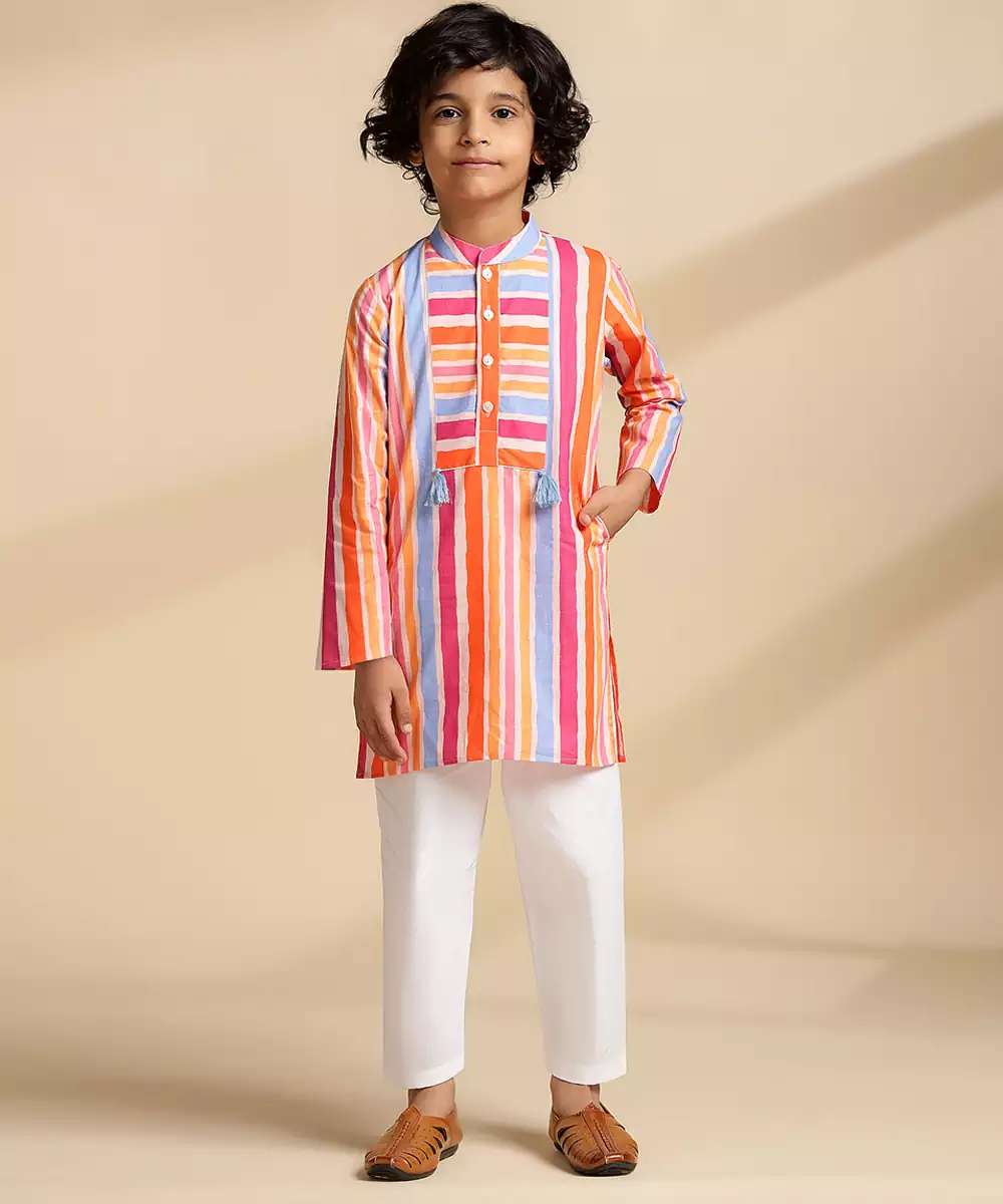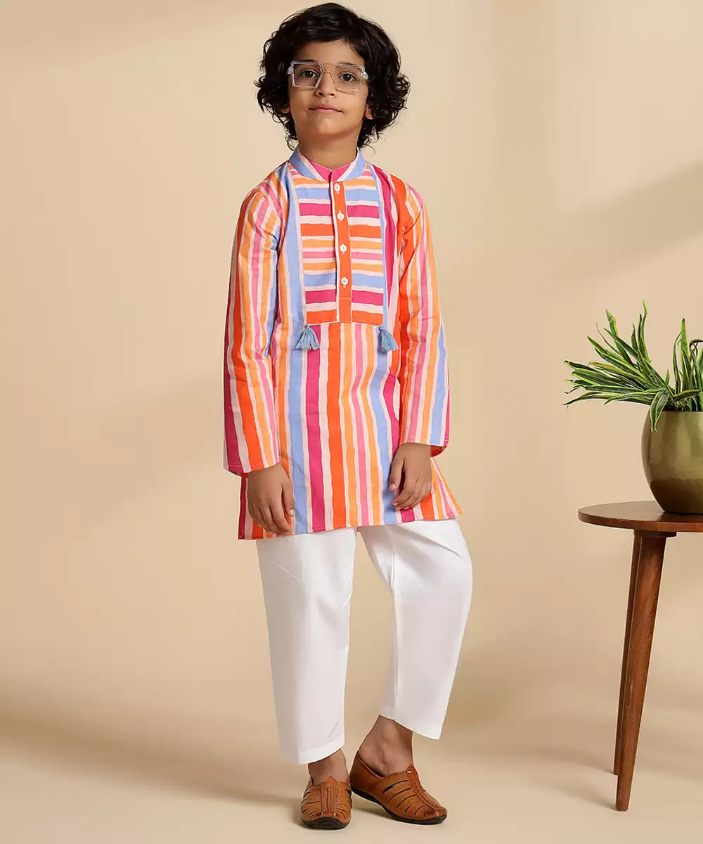 This Multicolor Printed Cotton Kurta Set Radiates Cheerful Elegance With Its Lively Patterns And Breathable, Soft Fabric. The Lightweight Cotton Ensures All Day Comfort, While The Vibrant Prints Add A Festive, Contemporary Charm. Perfect For Daytime Events, Celebrations, And Casual Gatherings, It Blends Effortless Style With Modern Ethnic Appeal.