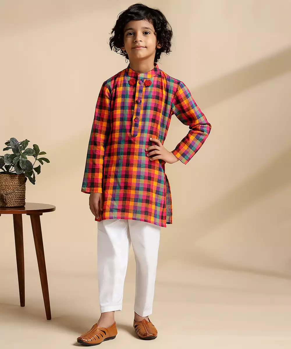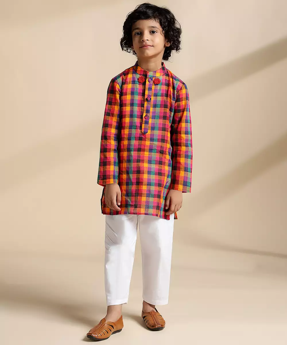 This Multicolor Printed Cotton Kurta Set Radiates Cheerful Elegance With Its Lively Patterns And Breathable, Soft Fabric. The Lightweight Cotton Ensures All Day Comfort, While The Vibrant Prints Add A Festive, Contemporary Charm. Perfect For Daytime Events, Celebrations, And Casual Gatherings, It Blends Effortless Style With Modern Ethnic Appeal.