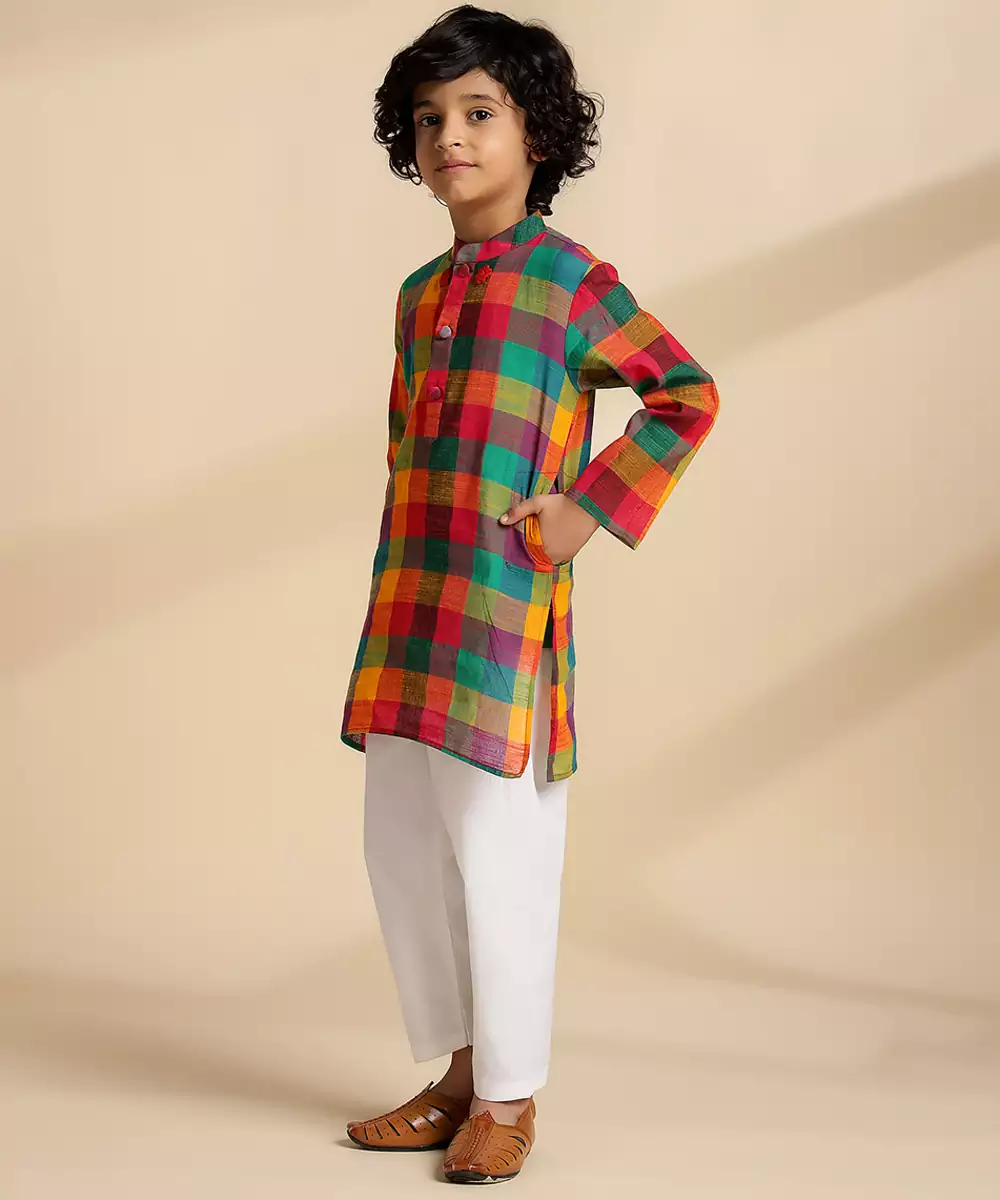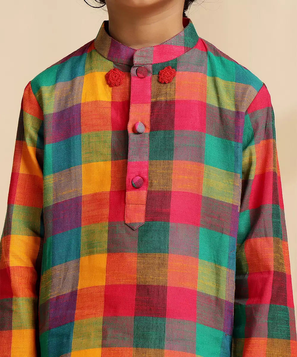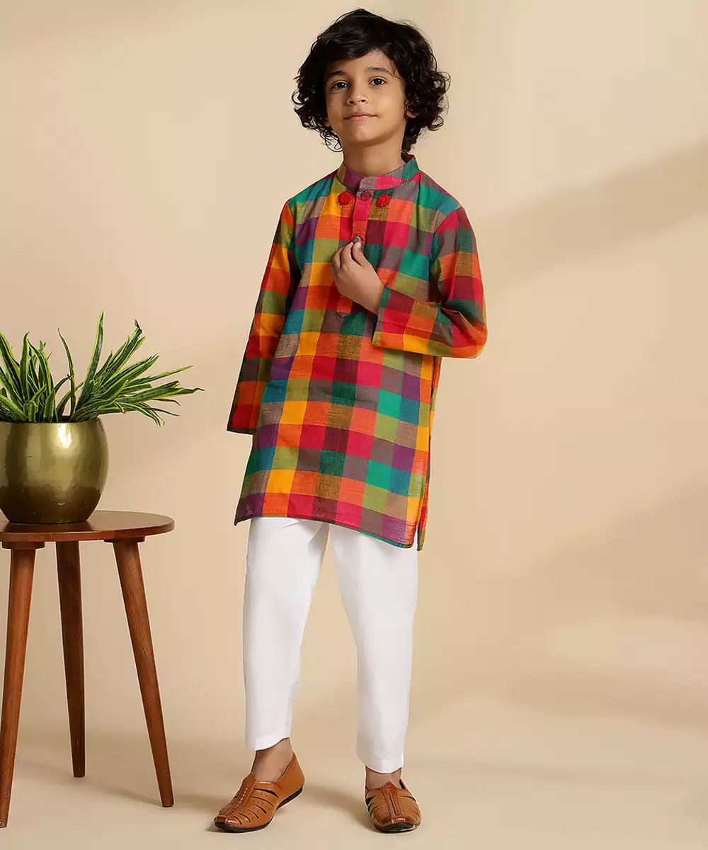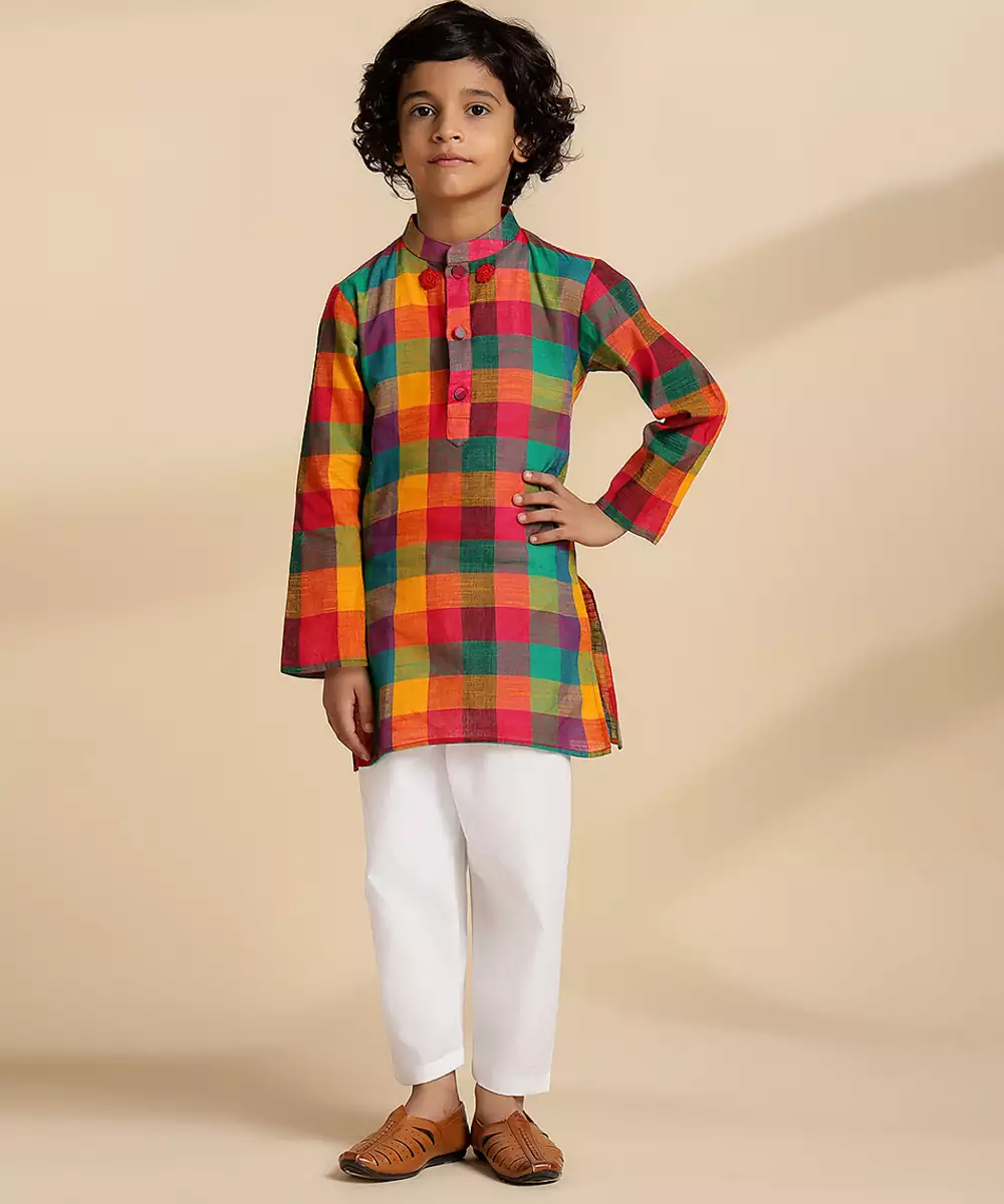 This Multicolor Printed Cotton Kurta Set Radiates Cheerful Elegance With Its Lively Patterns And Breathable, Soft Fabric. The Lightweight Cotton Ensures All Day Comfort, While The Vibrant Prints Add A Festive, Contemporary Charm. Perfect For Daytime Events, Celebrations, And Casual Gatherings, It Blends Effortless Style With Modern Ethnic Appeal.