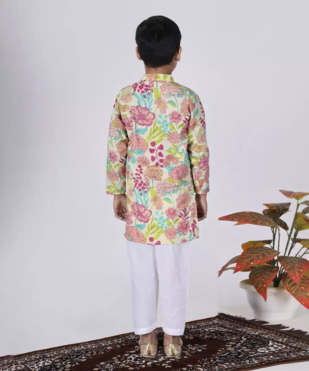 Featuring A Floral Printed Pink Cotton Kurta With White Cotton Pants. Colour: Pink Fabric: Cotton Components : 1 Kurta / 1 Pant
