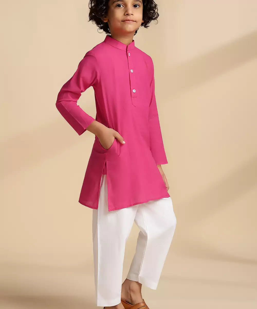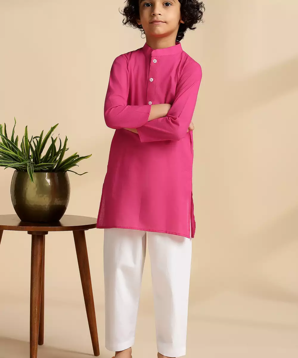 This Pink Plain Cotton Kurta Set Exudes Understated Elegance With Its Calming Hue And Clean, Refined Silhouette. Crafted From Soft, Breathable Cotton, It Ensures All Day Comfort And Effortless Movement. Perfect For Casual Outings, Festive Gatherings, And Daily Wear, It Blends Simplicity With Timeless Style For A Polished Ethnic Look.