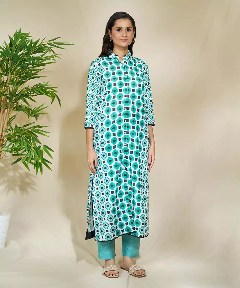 Aqua Beaded Long Cape With Intricate Hand Work Of African Bead Cutdana Sequnce Blue Jaam Cotton Pants