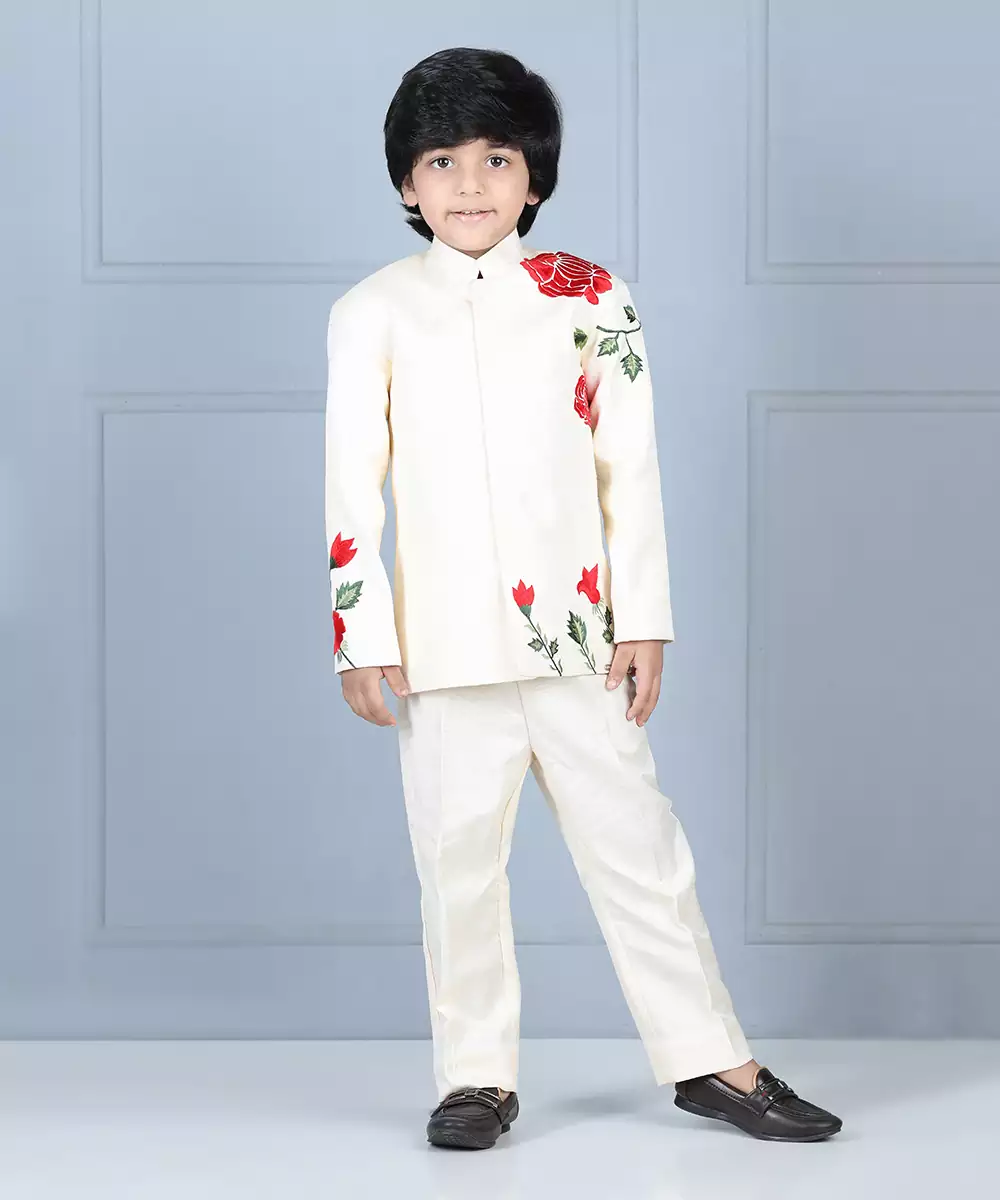 Bandh Gala Coat With Pants With Thread Embroidery.