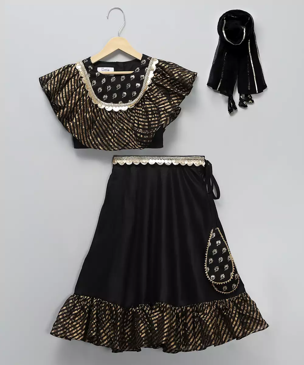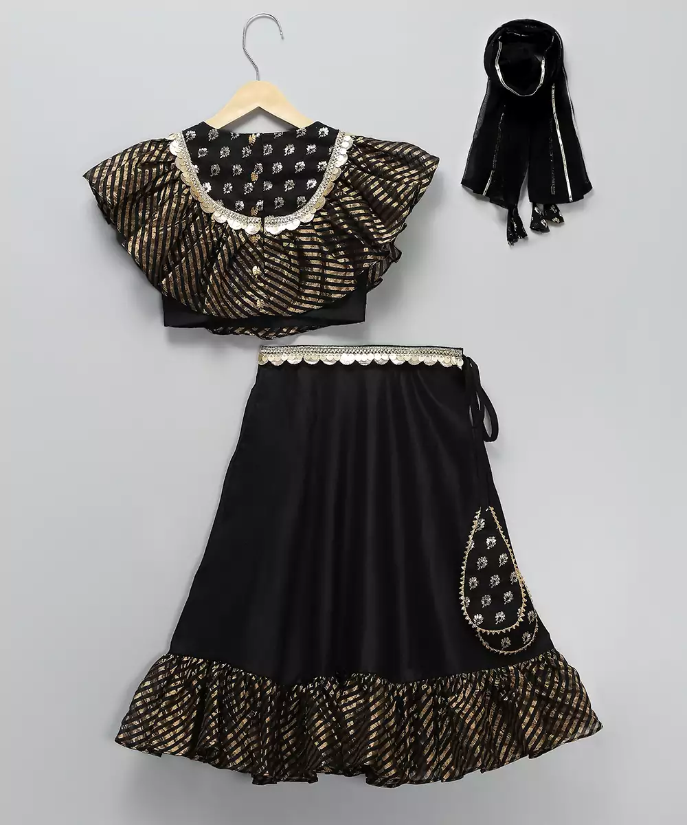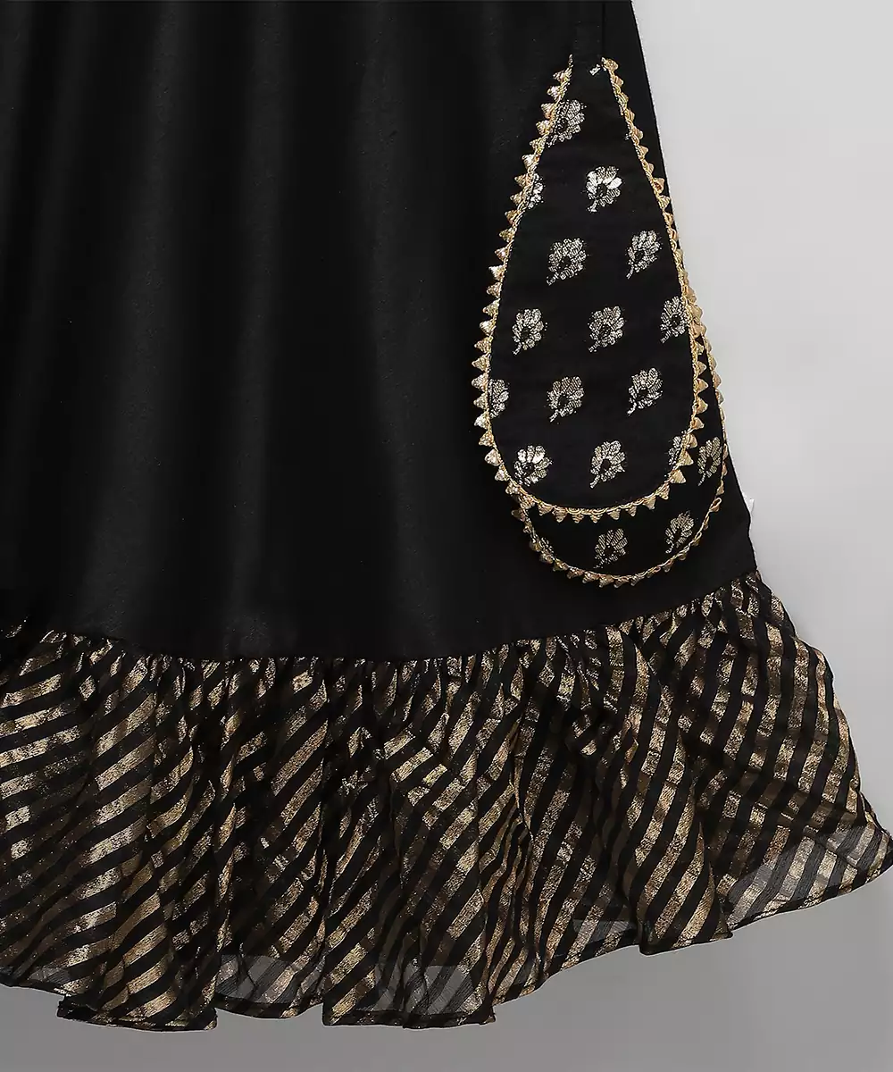 This Black Embroidered Cotton Silk Lehenga Set Blends Regal Charm With Refined Craftsmanship. The Soft Cotton Silk Fabric Offers A Graceful Drape, While Intricate Embroidery Adds Richness And Elegance. Ideal For Weddings, Festive Events, And Celebrations, It Pairs Beautifully With A Complementing Blouse And Dupatta For A Stunning Traditional Look.