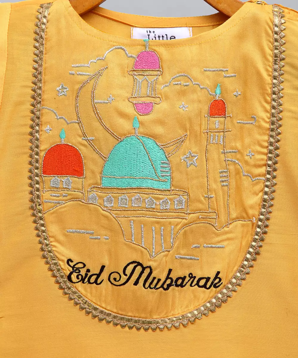 Yoke Embroidered Kurta. Kurta With Half Sleeves. Kurta With Back Opening. Kurta With Cotton Lining. Cotton Silk Sharara. Bottom With Elasticated Waist. Net Dupatta With Gota Embroidery
