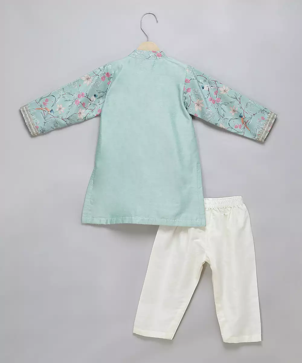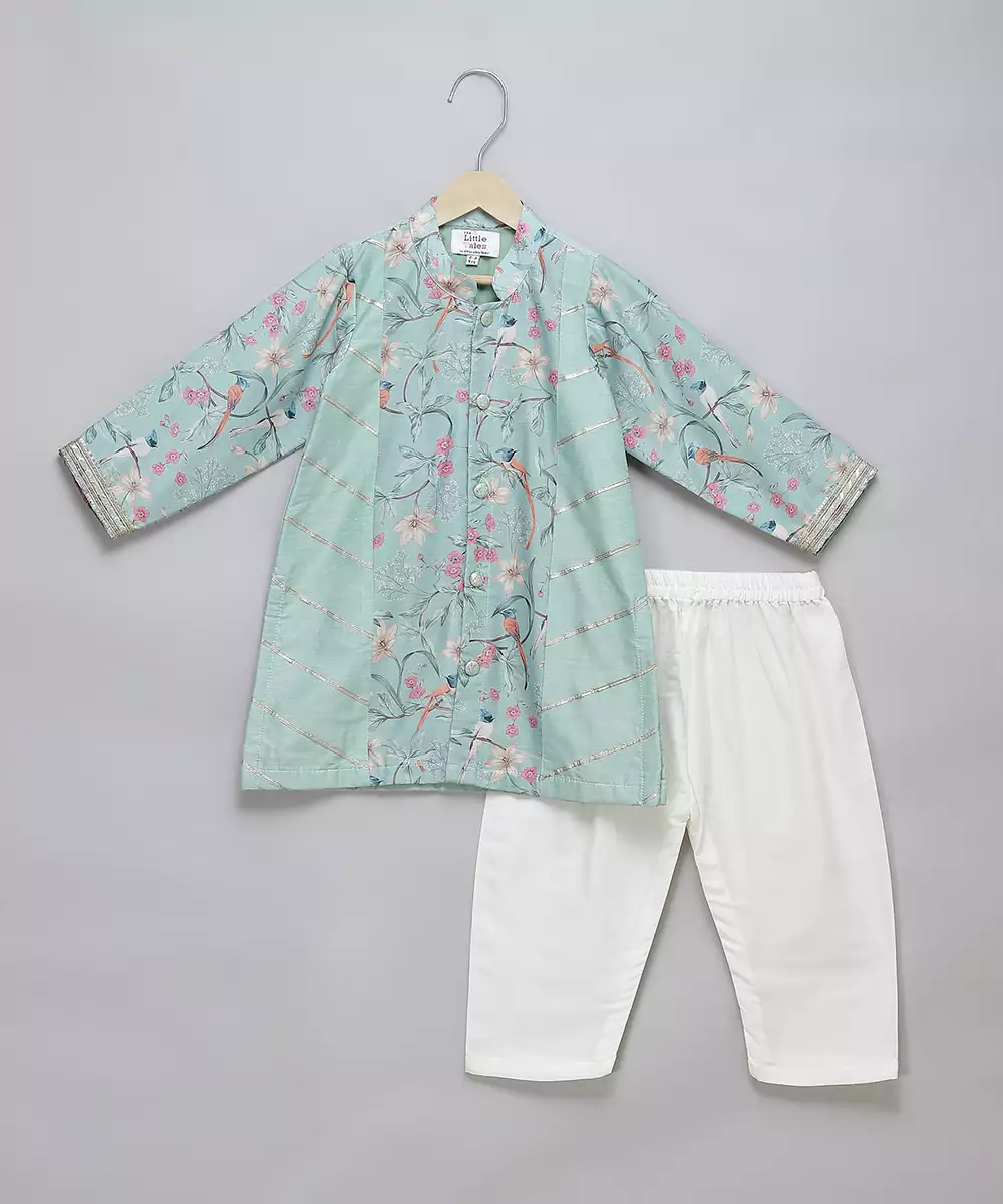 Pastel Green Cotton Silk Side Panel With Gota Embroidery Over It Attached With Printed Panels And Full Sleeves. Bottom With Elastic