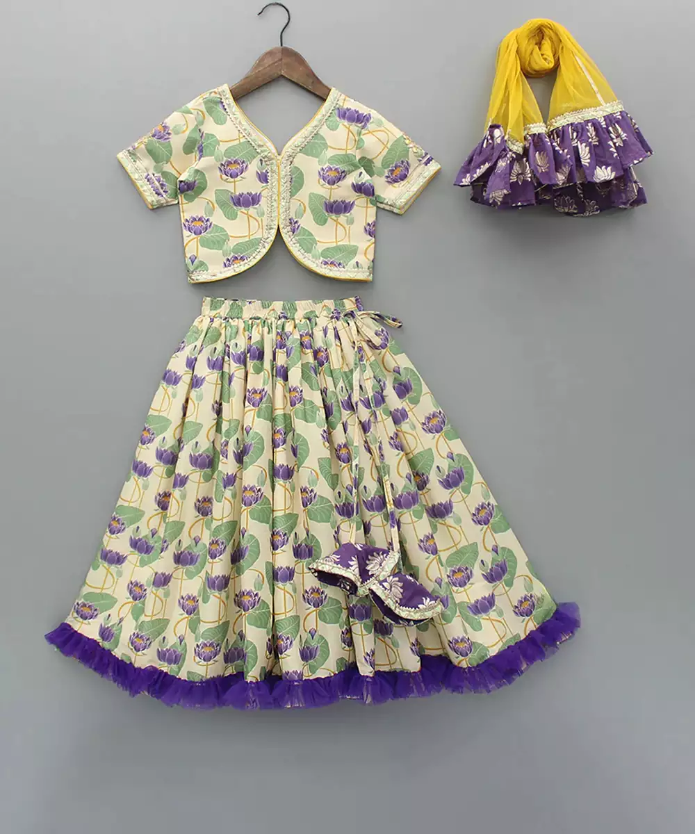 This Multicolor Printed Cotton Lehenga Set Radiates Vibrant Charm With Its Lively Patterns And Comfortable, Breathable Fabric. The Soft Cotton Lehenga Drapes Gracefully, While The Intricate Prints Add A Festive, Artistic Touch. Perfect For Weddings, Celebrations, And Traditional Gatherings, It Combines Elegance With Effortless Style For A Standout Ethnic Look.