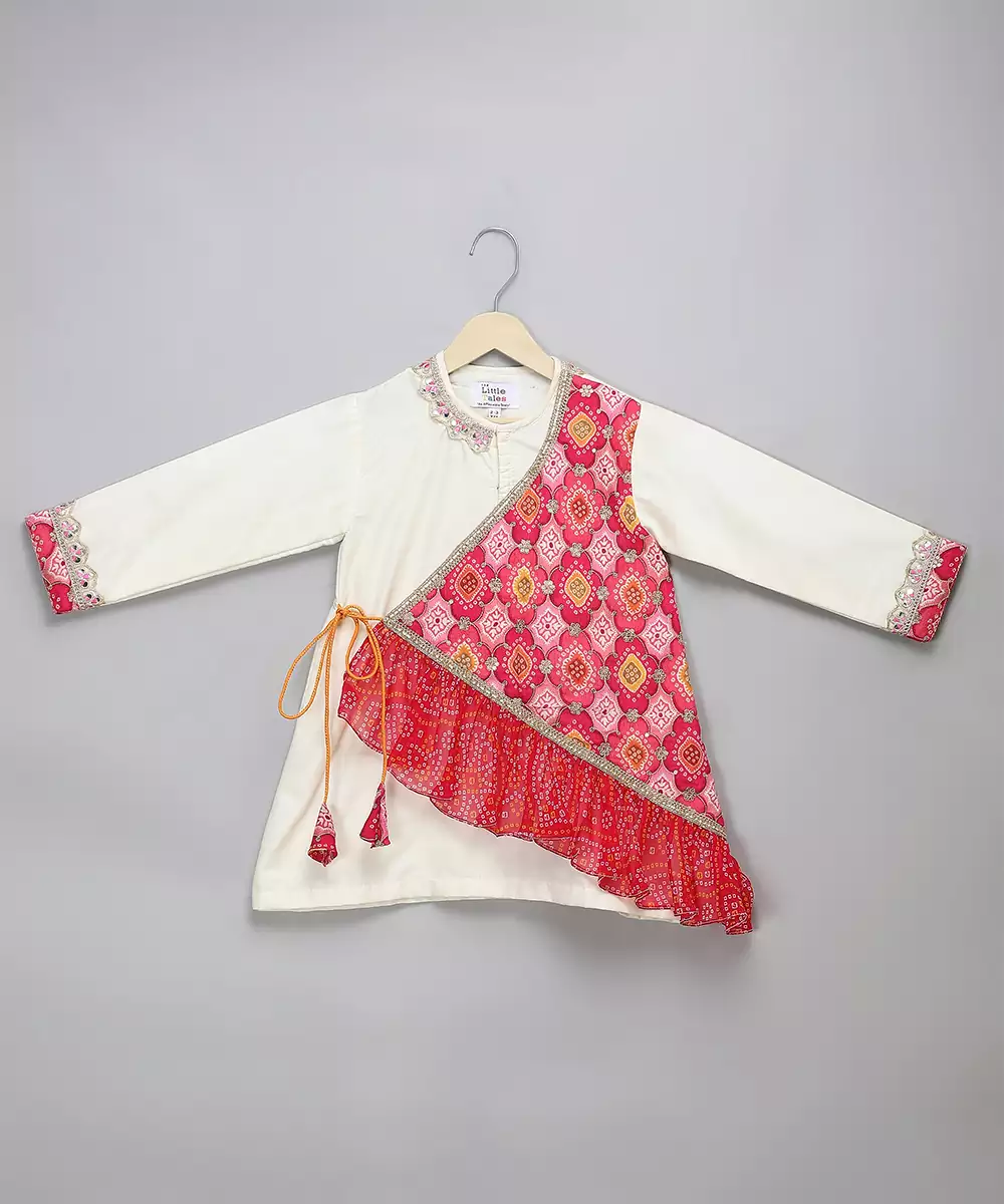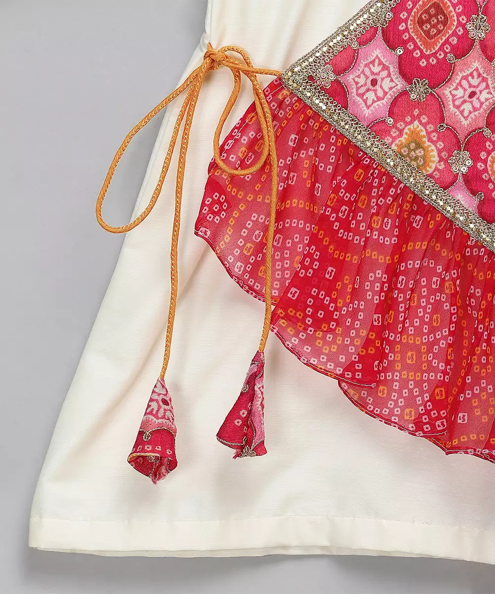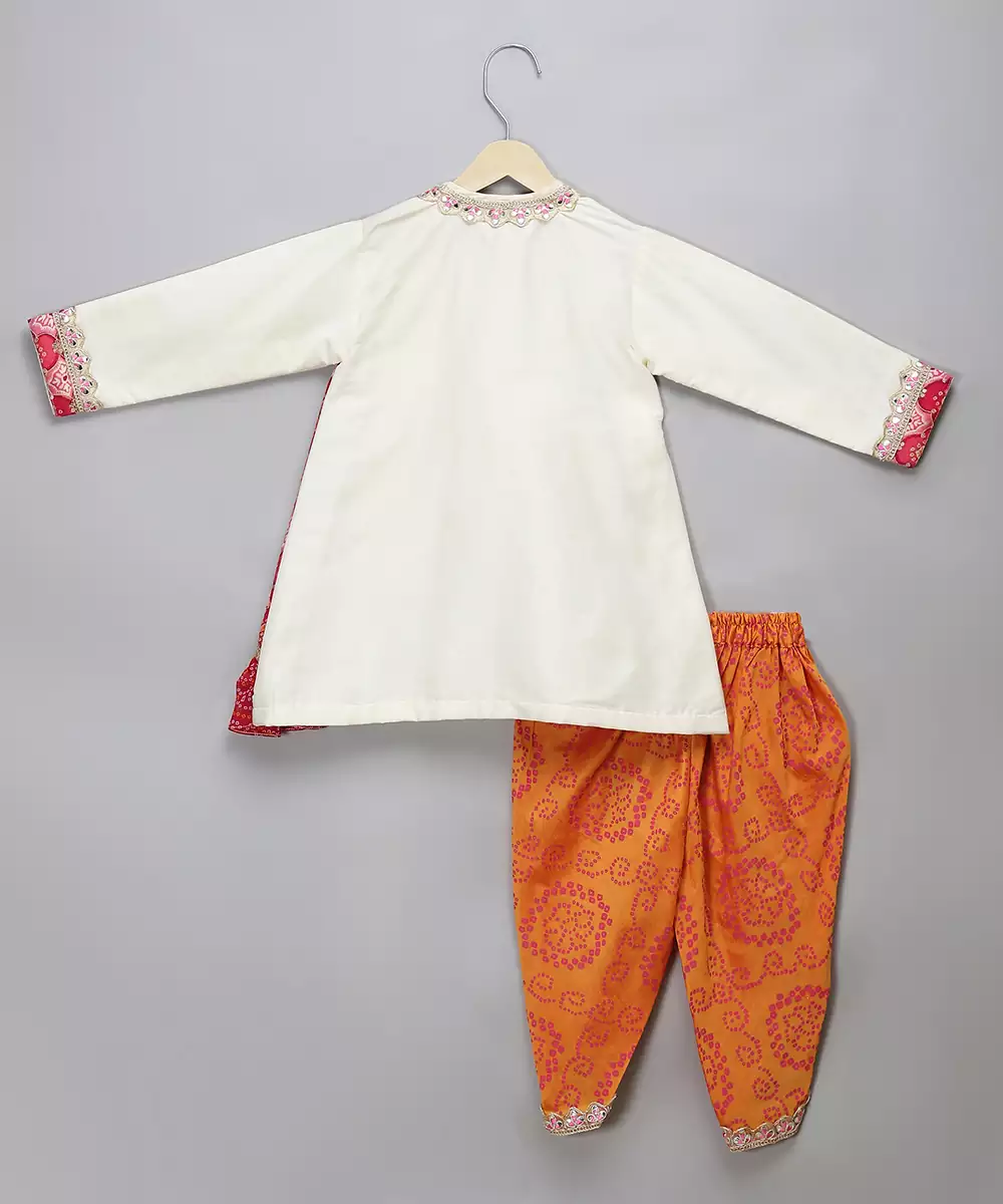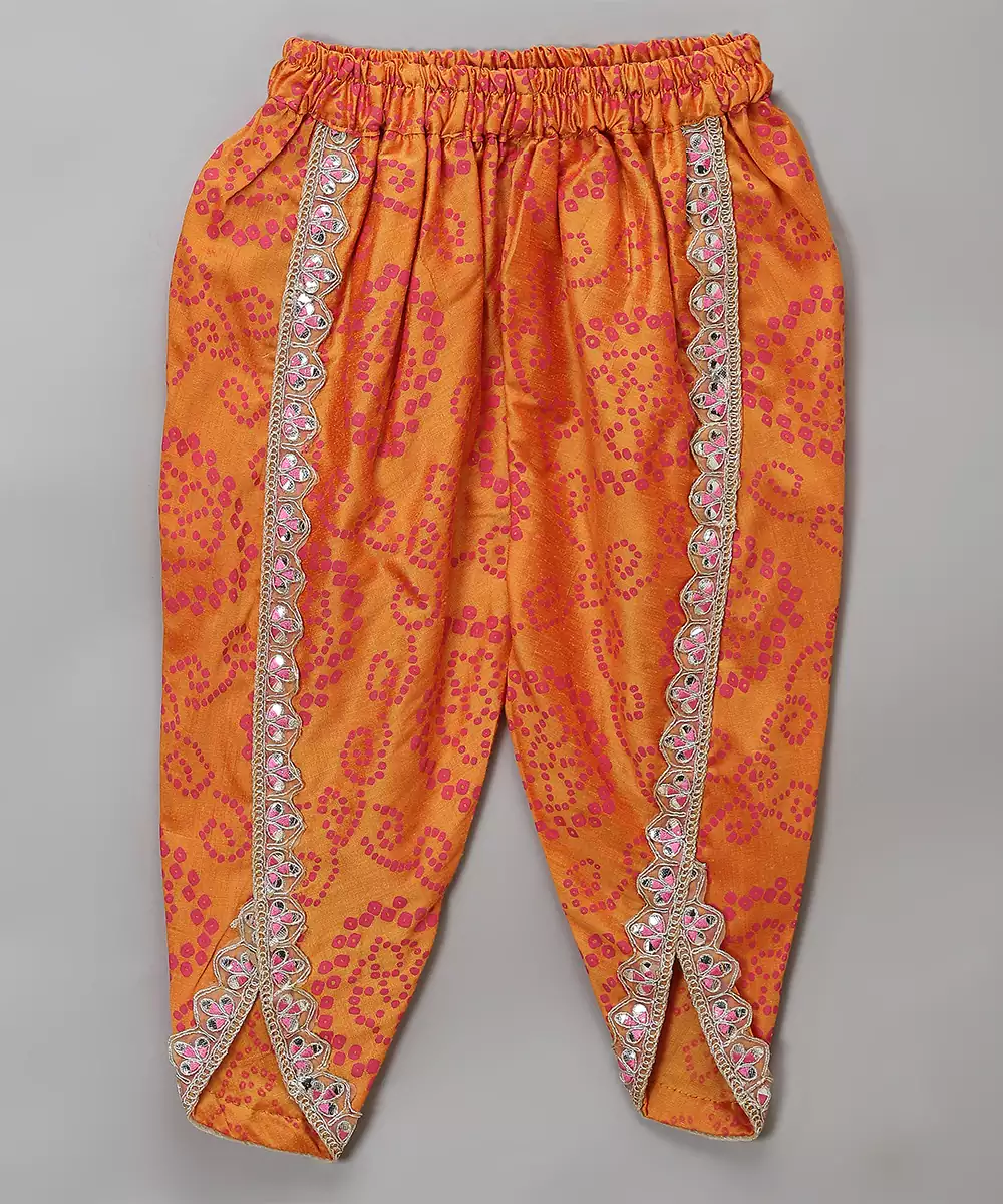 Yellow Cotton Silk Kurta With Printed Attached Panel On Top . Front Placket Opening . Pajama With Elastic. Colour: Multicolor Fabric:Cotton Silk Components: 1 Kurta / 1 Dhoti