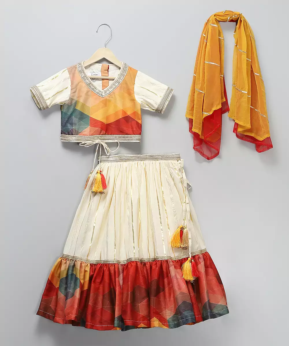 This Multicolor Printed Cotton Silk Lehenga Set Blends Traditional Charm With Modern Comfort. The Soft Cotton Silk Fabric Drapes Beautifully, While The Vibrant Prints Add A Lively, Festive Touch. Perfect For Weddings, Celebrations, And Cultural Events, It Pairs Effortlessly With A Complementing Blouse And Dupatta For An Elegant, Timeless Look.
