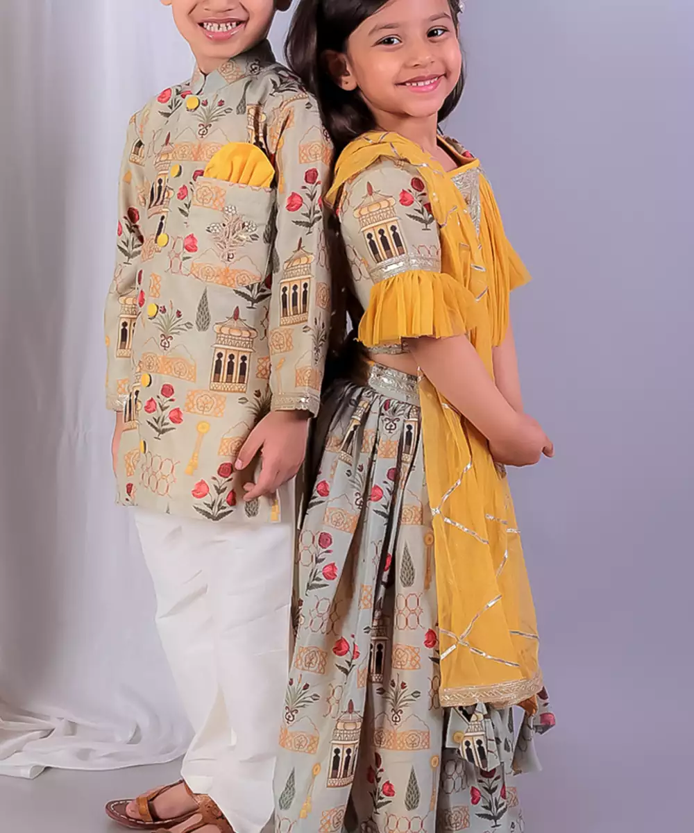 This Multicolor Printed Cotton Silk Lehenga Set Blends Vibrant Patterns With The Rich Sheen Of Cotton Silk. The Flowing Anarkali Silhouette Offers Elegance And Comfort, Perfect For Festive Events, Weddings, And Cultural Celebrations. Paired With A Complementing Dupatta, It Creates A Stylish, Graceful, And Eye Catching Traditional Ensemble.