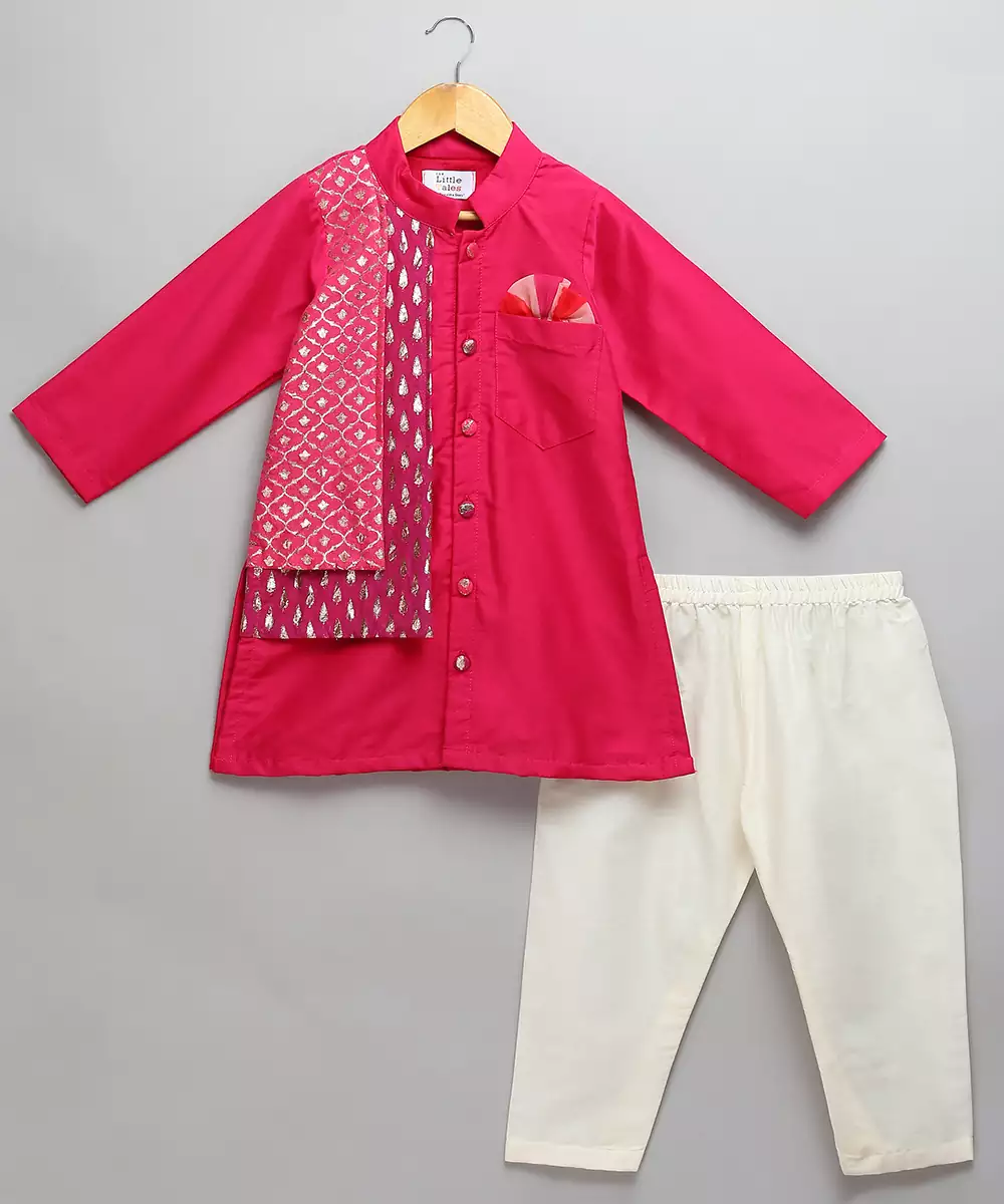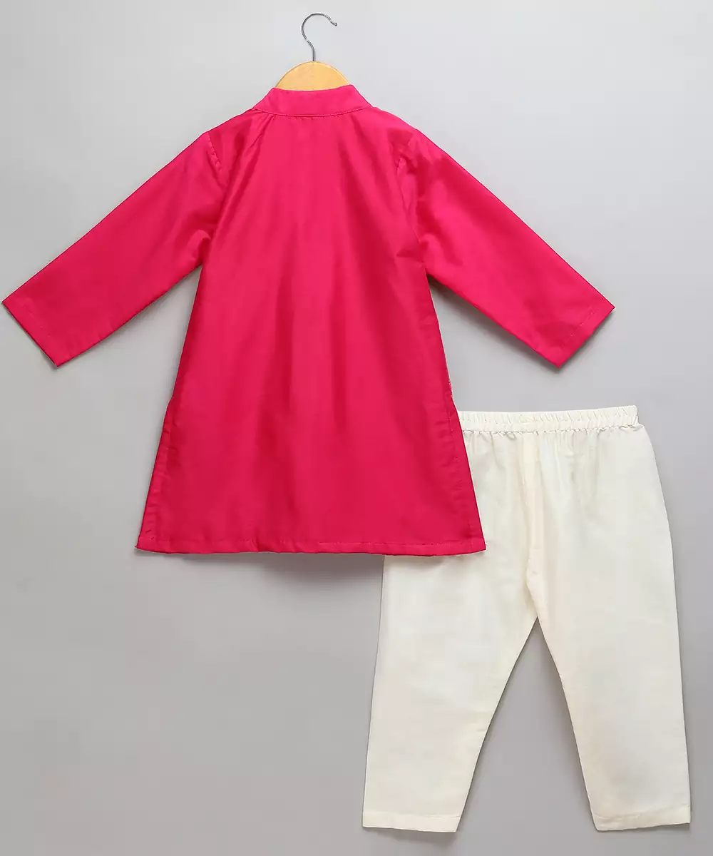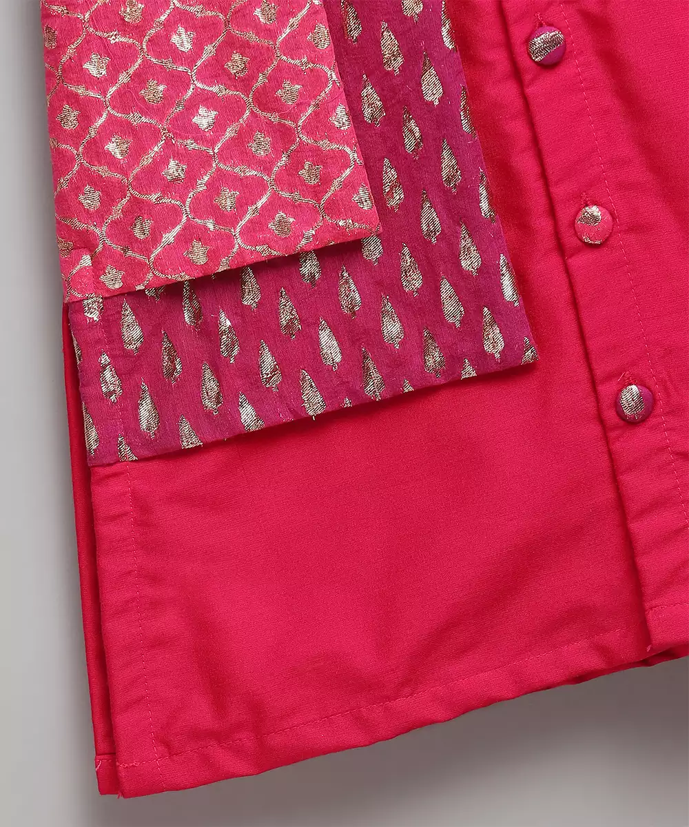 Pink Cotton Silk Kurta With Front Opening. Attached Cotton Zari Panels On The Kurta . Pajama With Elastic Colour: Pink Fabric:Cotton Silk Components: 1 Kurta / 1 Pyjama