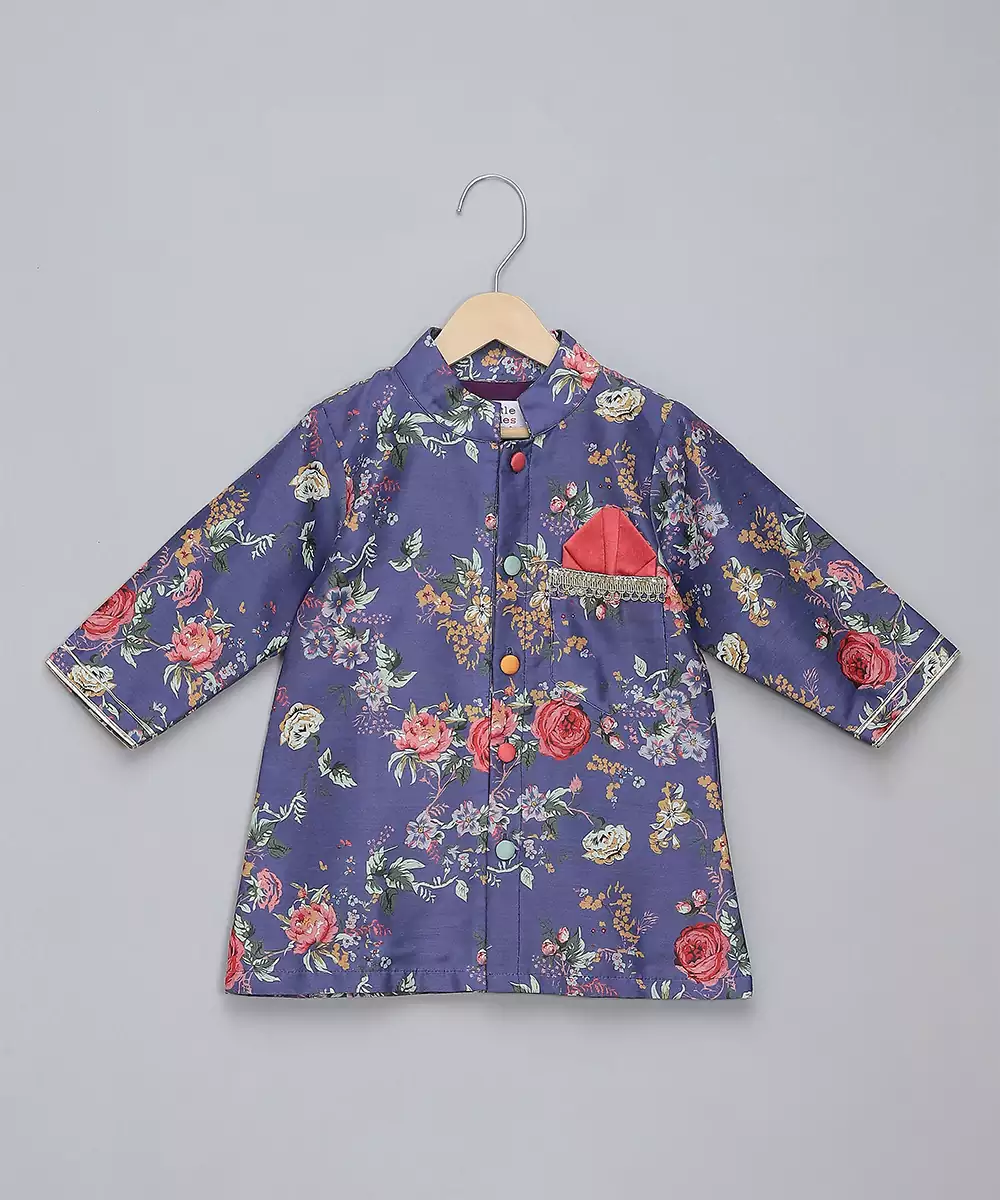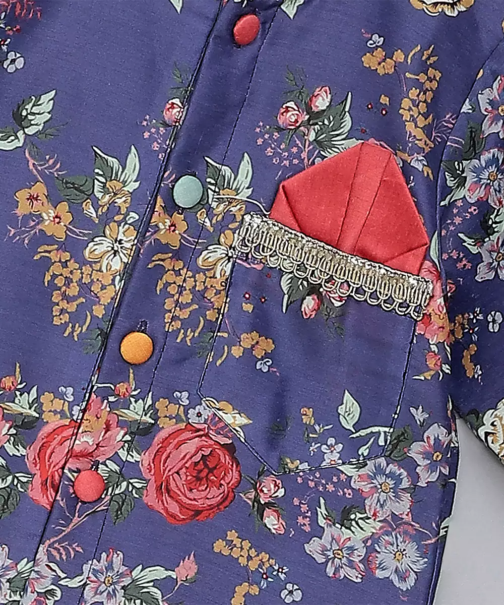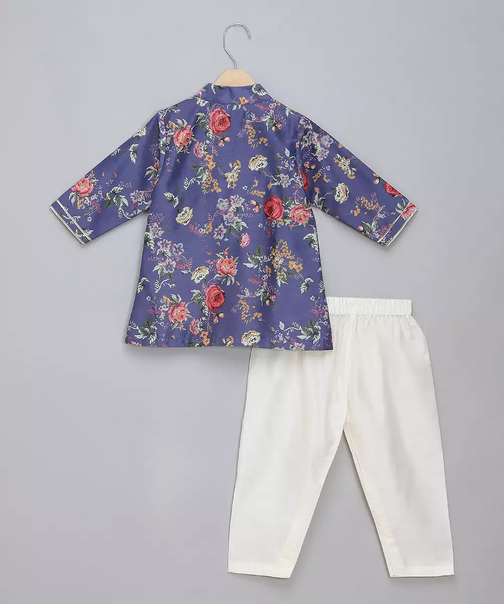 Purple Digital Printed Front Open Multicolor Cotton Silk Kurta With Multi Color Buttons. Front Placket Opening . Pajama With Elastic.