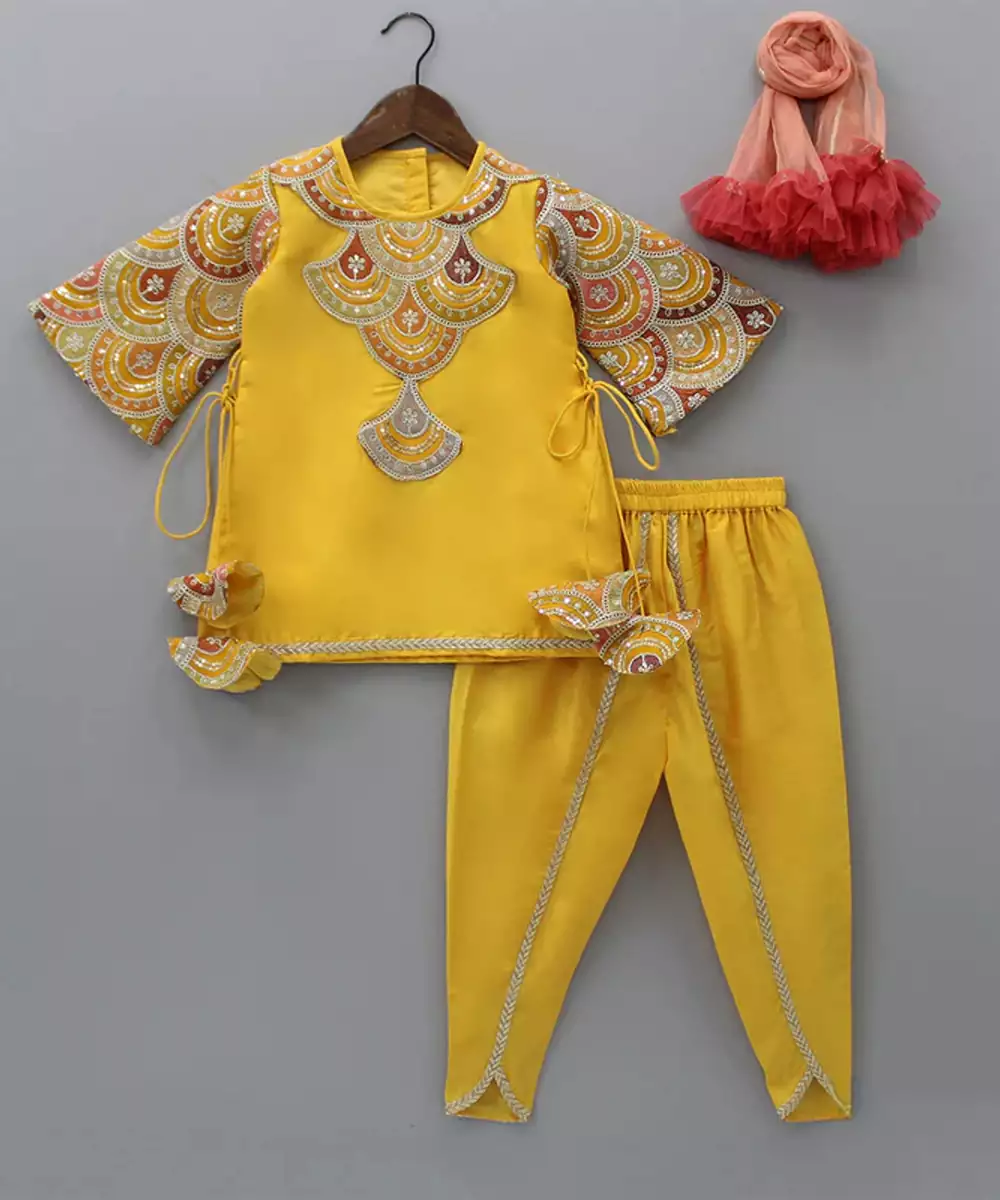 Components: 1 Kurta / 1 Dhoti / 1 Dupatta