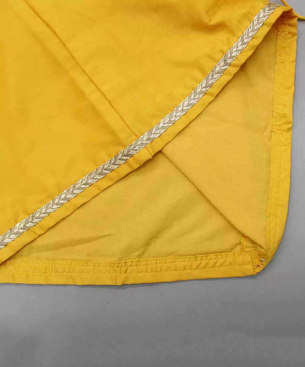 Elevate Your Festive Wardrobe With This Yellow Embroidered Cotton Silk Kurta Set. Crafted From Premium Cotton Silk, It Offers A Soft, Breathable Feel With A Subtle Sheen. Intricate Embroidery Adds Elegance, Making It Perfect For Traditional Events, Weddings, Or Celebrations. Pair With Churidar Or Palazzo For A Graceful, Stylish Look.