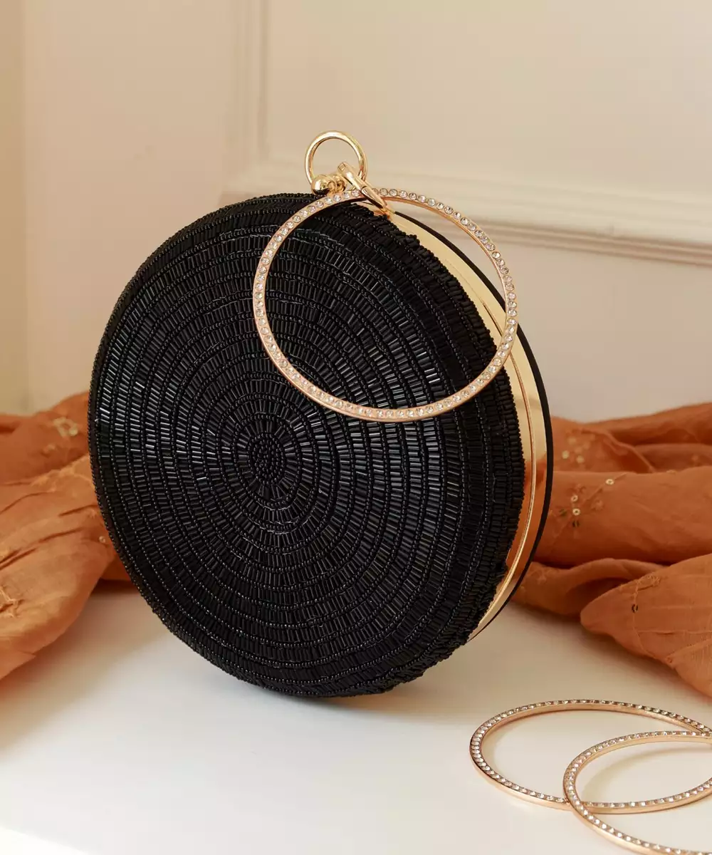 Behold The Breath Taking And Truly Exquisite Keisha Black Tassle Potli With Handle, A Mesmerizing Masterpiece That Epitomizes Opulence And Luxury. Immerse Yourself In The World Of Unparalleled Elegance And Sophistication As You Indulge In This Awe Inspiring Accessory, Meticulously Crafted To Captivate Hearts And Turn Heads.Prepare To Be Amazed Because These Beauties Are Handcrafted With Sheer Perfection, And Guess What? They Won’t Break The Bank! Affordable And Fabulous, They’re Here To Save The Day And Ensure You Can Rock A New Potli With Every Function On Your Social Calendar.
