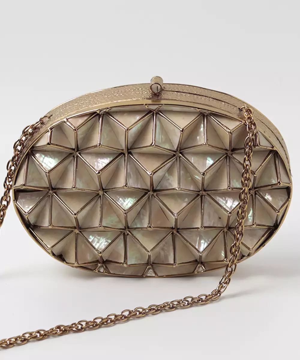 Gold Embellished Clutch With Removeable Chain