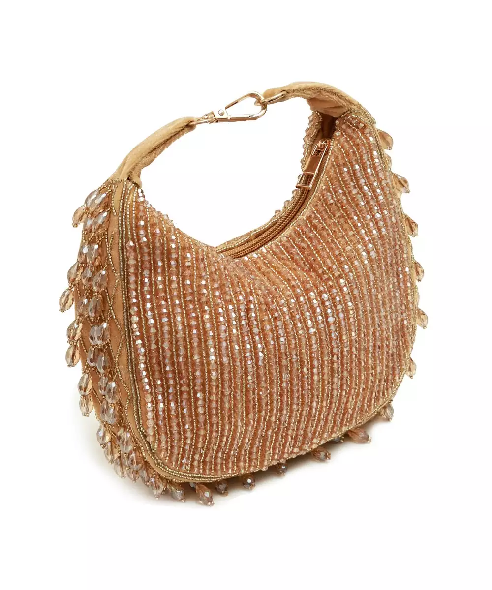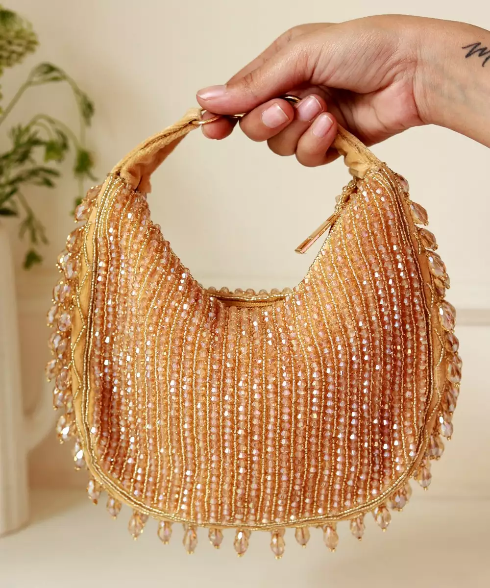 The Sukoon Hand Embroidered Potli With Pearl Handle Is A Beautifully Crafted And Exquisite Accessory That Adds A Touch Of Elegance And Charm To Any Outfit. This Potli Is Meticulously Handcrafted With Attention To Detail, Showcasing The Artistry Of Skilled Artisans.Immerse Yourself In Unparalleled Elegance And Sophistication As You Indulge In This Awe Inspiring Accessory, Meticulously Crafted To Captivate Hearts And Turn Heads.The Outside Of The Potli Is Decorated With Intricate Handwork, Showcasing Delicate Patterns And Designs. The Embroidery Uses High Quality Materials, Giving The Pouch A Rich And Captivating Appearance. The Motifs Can Range From Traditional Symbols Inspired By Indian Culture To Modern Designs, So You Can Choose A Style That Reflects Your Taste.