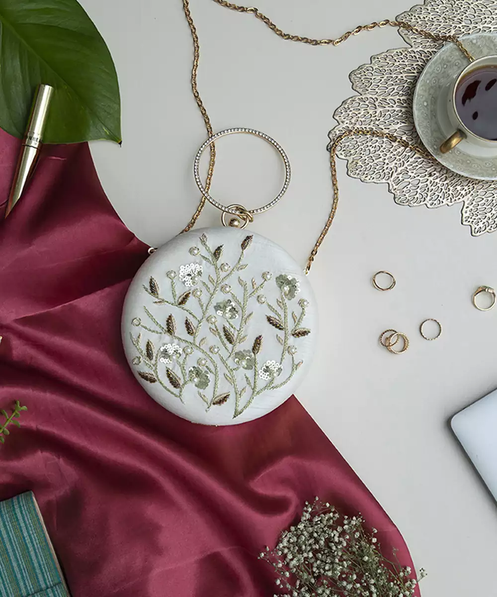 Smart And Chic With An Adorably Minimalistic Style. The Falaq Round Clutch Is The Perfect Companion For The Modern Fashionista. Flaunt Your Uniqueness While Being In Vogue. With The Tan Clan Embroidery Collection, We’ve Made It Easy To Own The Best Of Everything Without Compromising Luxury.