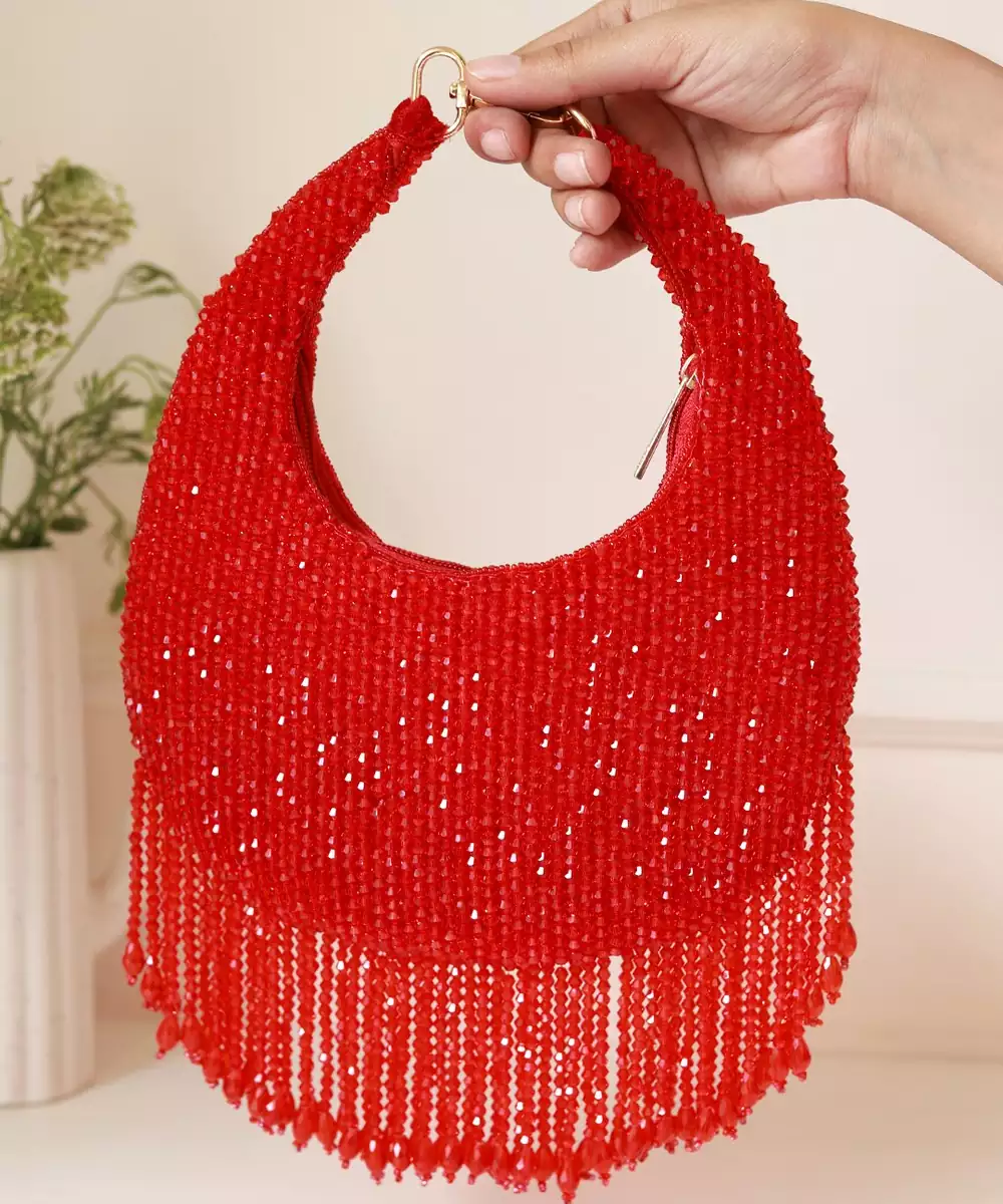 Experience The Artistry Of Delhi’s Master Artisans With The Captivating Twinkle Heavy Tassles Potli. Each Stitch And Detail Tells A Story Of Passion And Tradition, Showcasing The Unrivaled Skill Of These Talented Craftsmen. Crafted From Premium Silk, This Potli Exudes Regal Charm, Elevating Both Traditional Indian Attire And Contemporary Fusion Ensembles.Prepare To Be Mesmerized By The Potli’s Stunning Heavy Tassels, Gracefully Dangling From Its Drawstring Closure. Intricately Handcrafted With Delicate Embellishments And Shimmering Sequins, These Tassels Catch The Light, Creating A Mesmerizing Effect That Adds An Extra Touch Of Allure To Your Every Move.