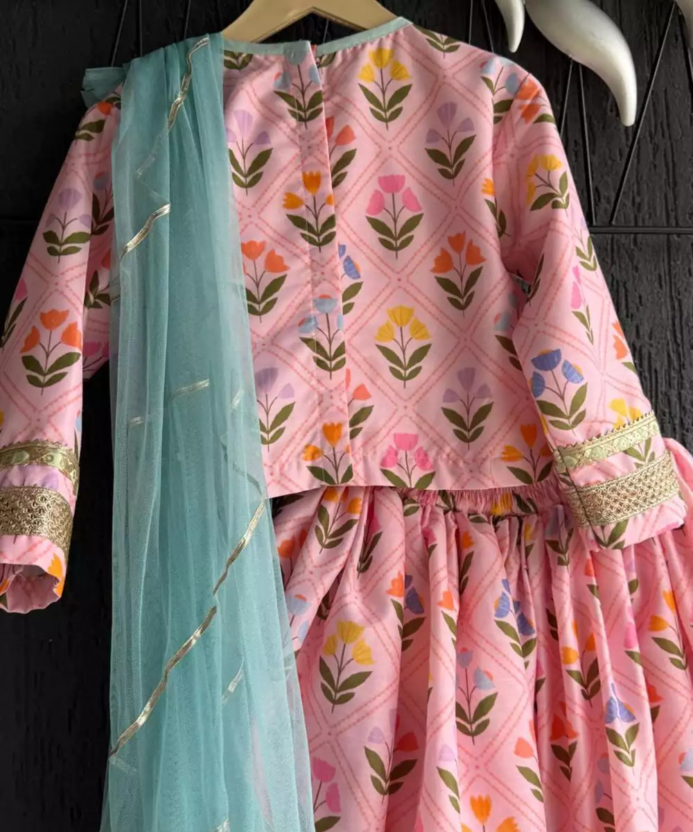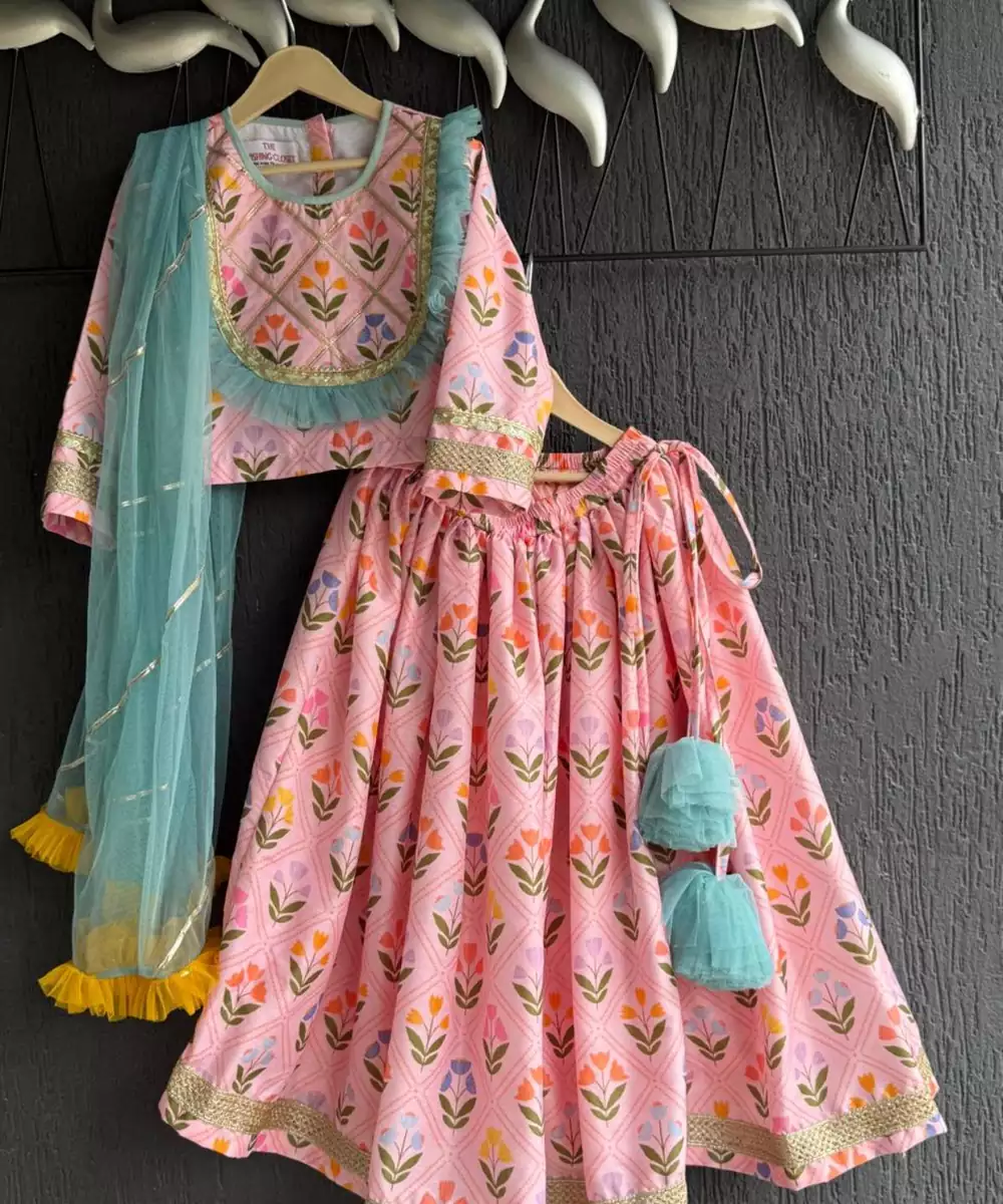 The Pink Printed Cotton Silk Lehenga Features A Soft, Luxurious Blend Of Cotton And Silk With Elegant Ethnic Prints. Its Lightweight, Flared Silhouette Offers Comfort And Graceful Movement. Perfect For Festive Occasions, Weddings, And Celebrations, This Lehenga Combines Vibrant Style With Effortless Wearability, Making It A Beautiful Choice For Any Special Event.