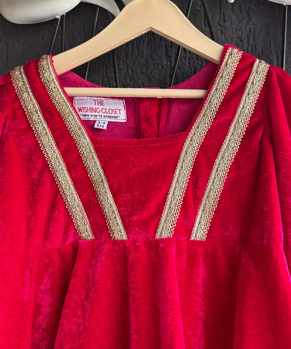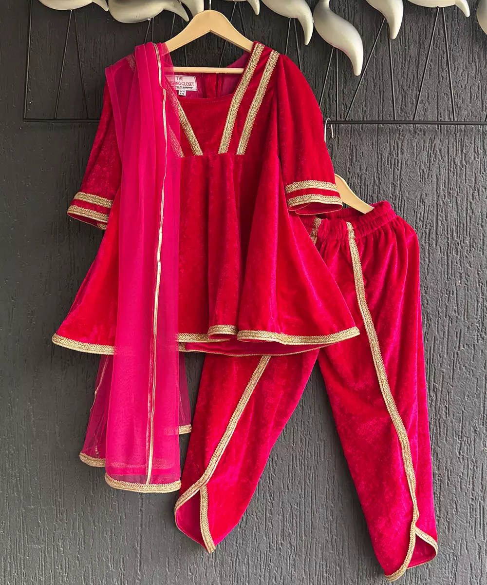This Red Embroidered Velvet Kurta Set Exudes Regal Elegance And Festive Grandeur. Crafted From Rich, Plush Velvet, It Features Intricate Embroidery That Enhances Its Luxurious Appeal. The Tailored Kurta Paired With Coordinated Bottoms Creates A Sophisticated Silhouette, Making It Perfect For Weddings, Celebrations, Or Special Festive Occasions With Timeless Charm.