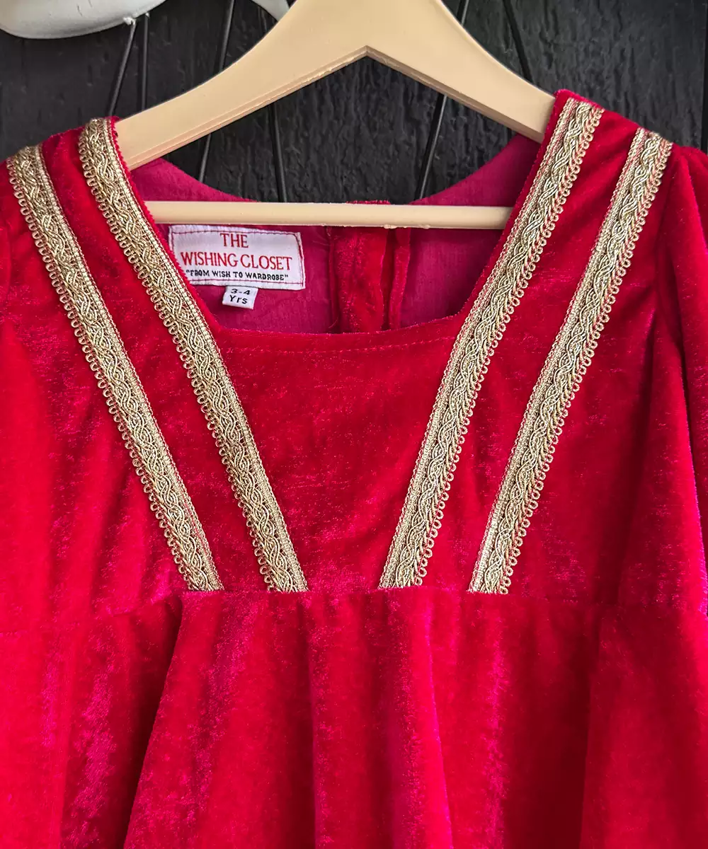 This Red Embroidered Velvet Kurta Set Exudes Regal Elegance And Festive Grandeur. Crafted From Rich, Plush Velvet, It Features Intricate Embroidery That Enhances Its Luxurious Appeal. The Tailored Kurta Paired With Coordinated Bottoms Creates A Sophisticated Silhouette, Making It Perfect For Weddings, Celebrations, Or Special Festive Occasions With Timeless Charm.