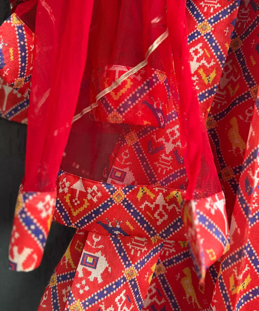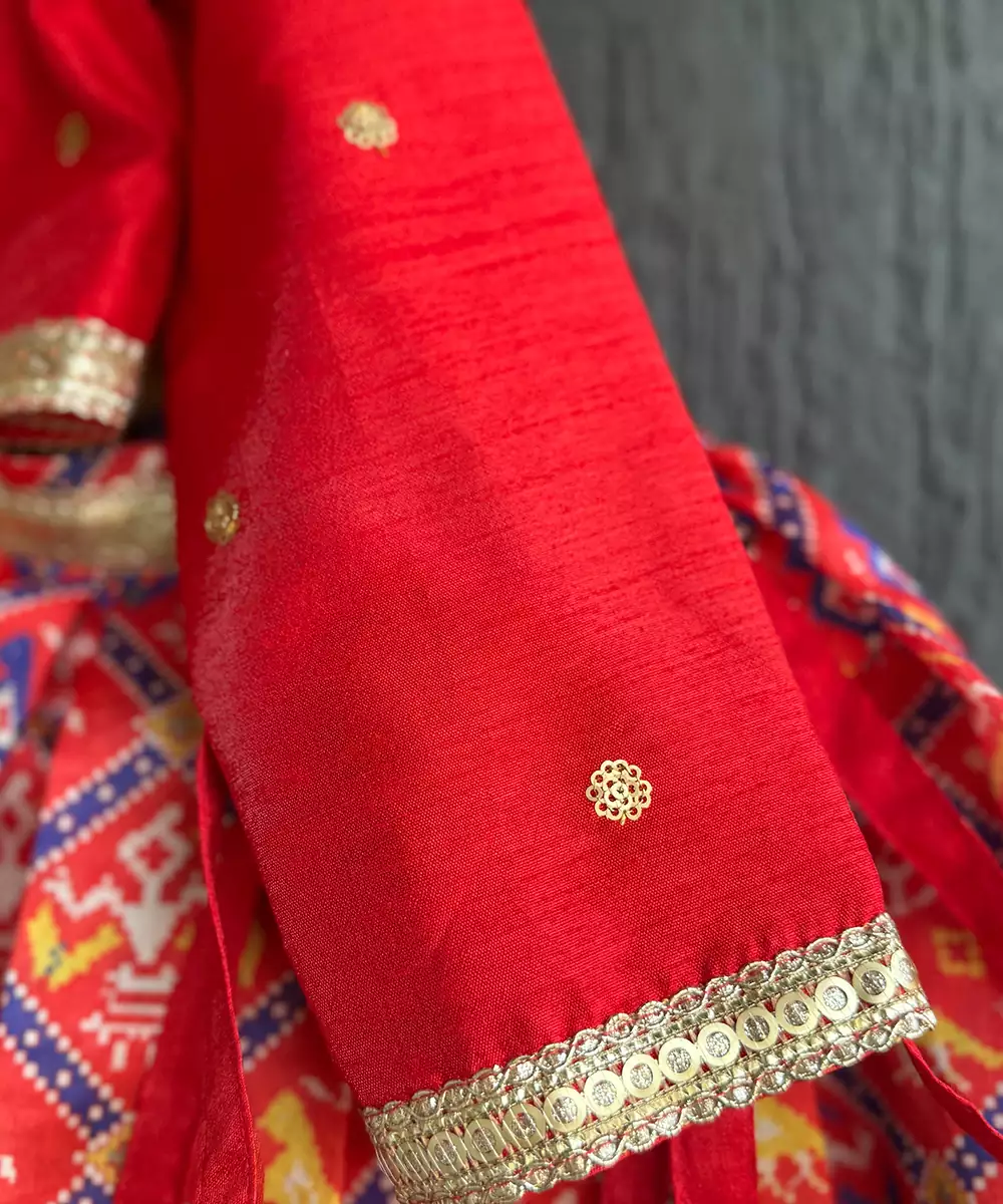 This Red Printed Cotton Lehenga Set Exudes Vibrant Charm And Festive Elegance. Crafted From Soft, Breathable Cotton, It Features Lively Prints That Enhance Its Traditional Appeal. The Flared Lehenga Paired With A Coordinated Top Creates A Graceful Silhouette, Making It Perfect For Daytime Festivities, Cultural Celebrations, Or Casual Festive Gatherings With Comfortable, Stylish Flair.