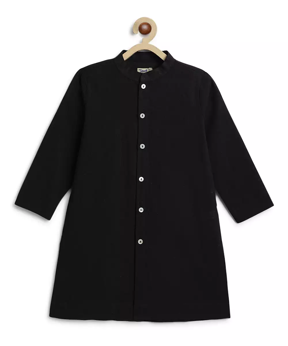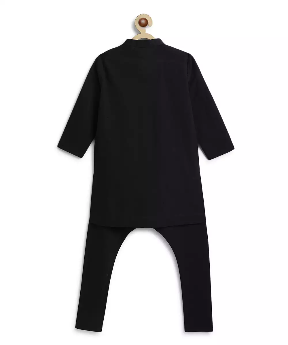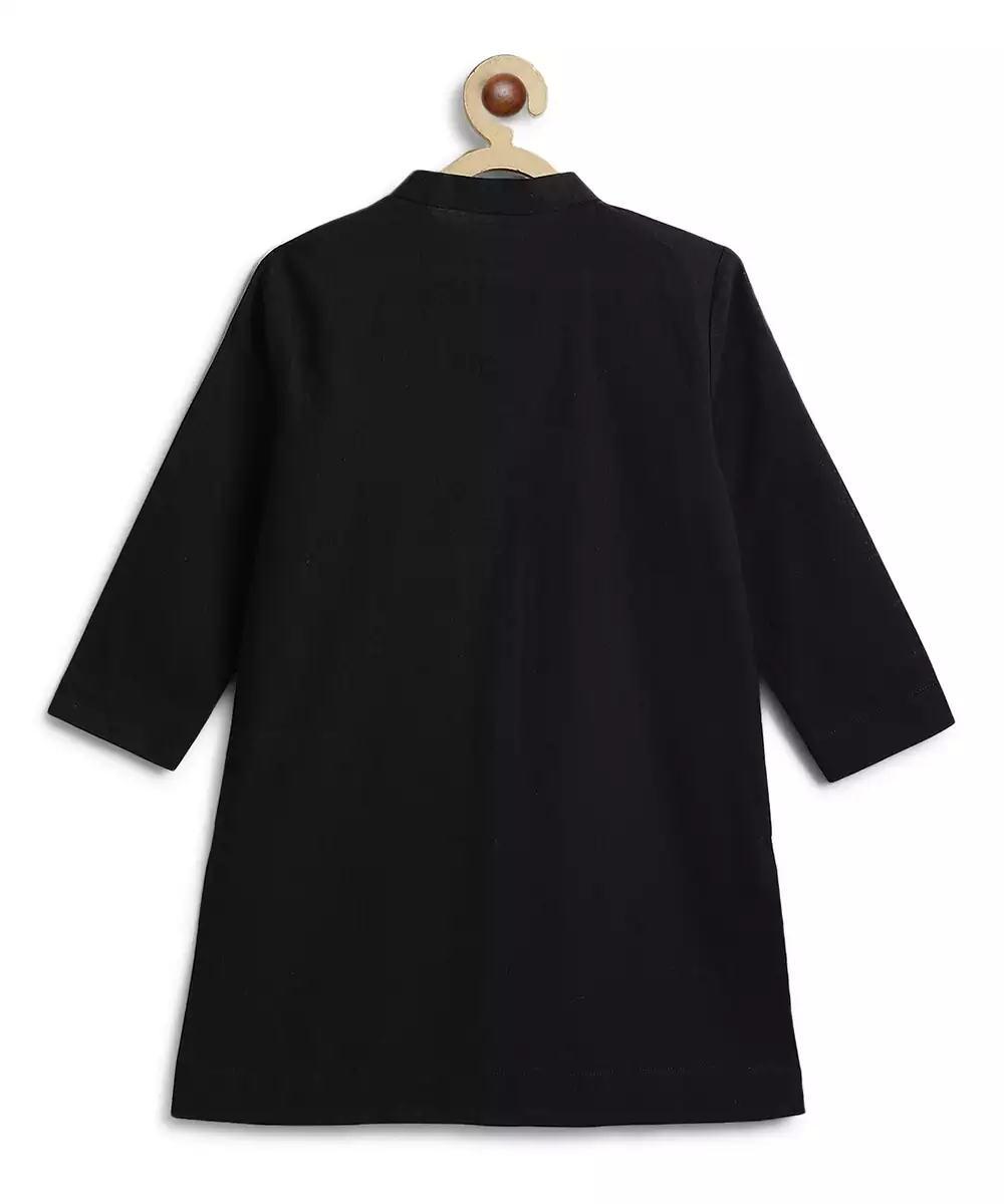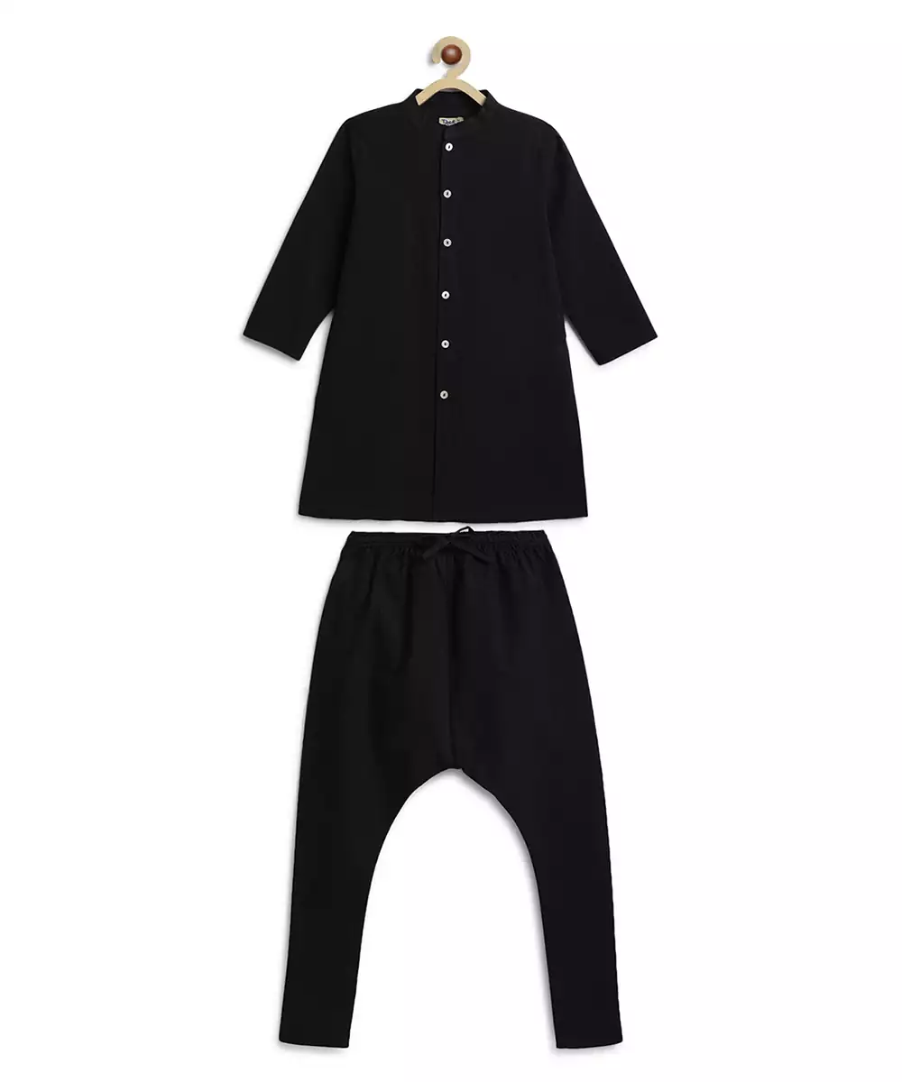 This Black Cotton Kurta Pyjama Set Reflects Timeless Elegance And Everyday Comfort. Made From Soft, Breathable Cotton, It Offers A Relaxed Fit And Effortless Style. Perfect For Festive Occasions, Traditional Ceremonies, Or Daily Wear, This Classic Ensemble Ensures Ease Of Movement While Maintaining A Clean, Graceful Look Rooted In Tradition.