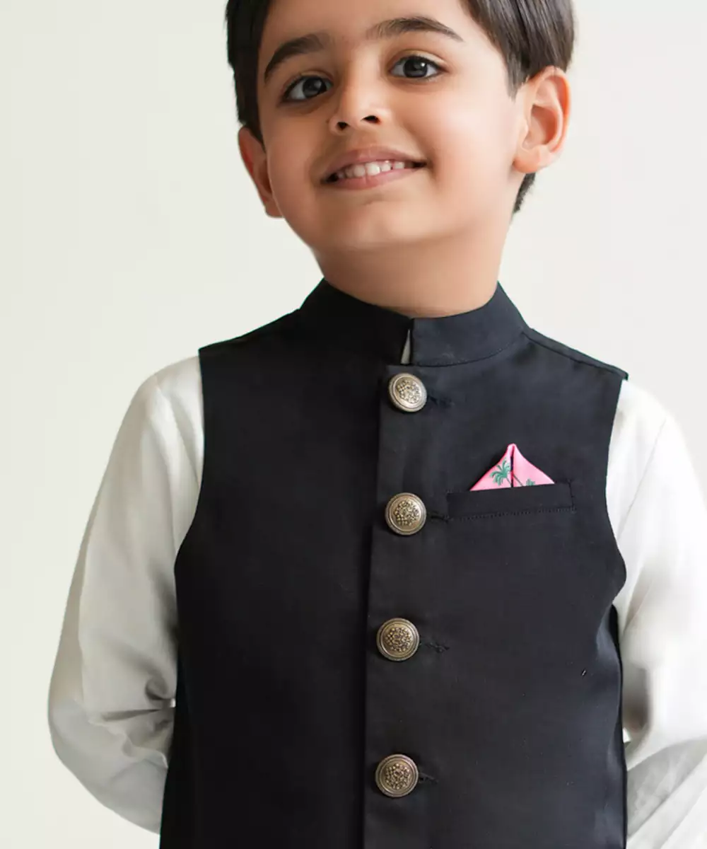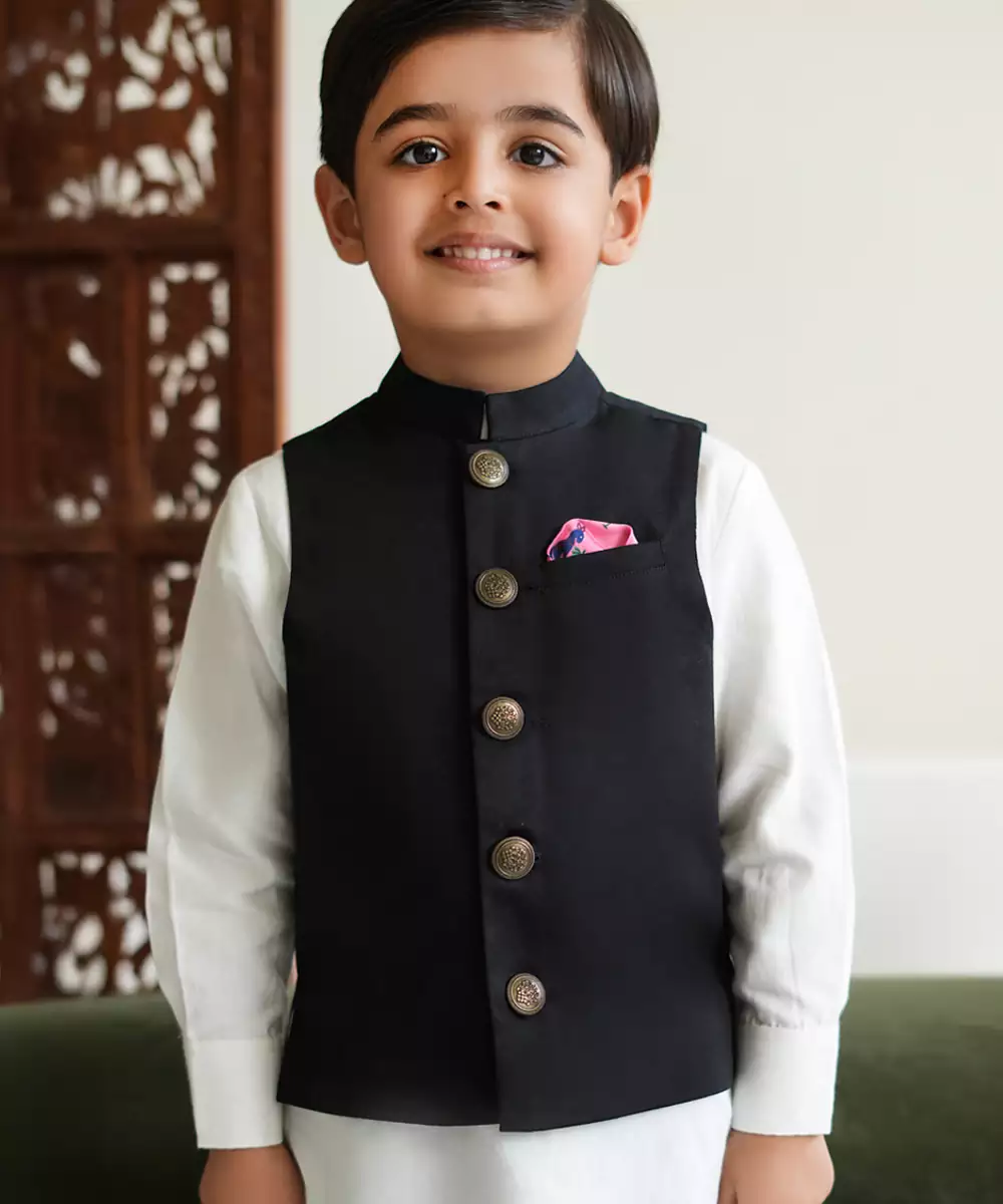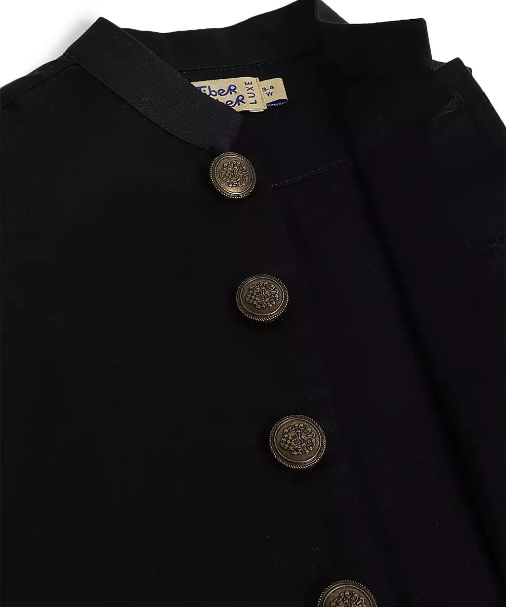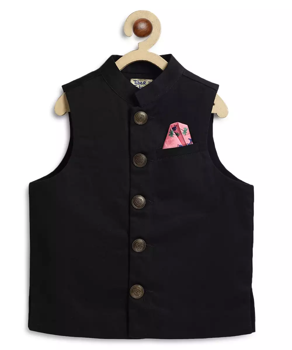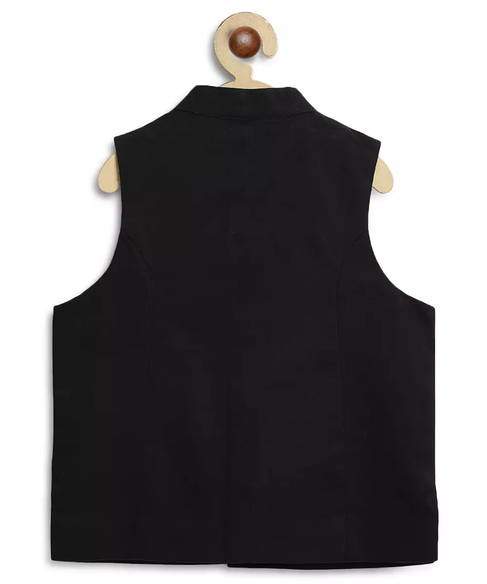 This Black Cotton Nehru Jacket Showcases Timeless Elegance With Its Clean Lines And Structured Silhouette. Crafted From Breathable Cotton, It Offers Comfort And Versatility For All Day Wear. Perfect For Festive Occasions, Formal Events, Or Layering Over Kurtas And Shirts, This Classic Piece Adds A Refined, Traditional Touch To Any Ensemble.