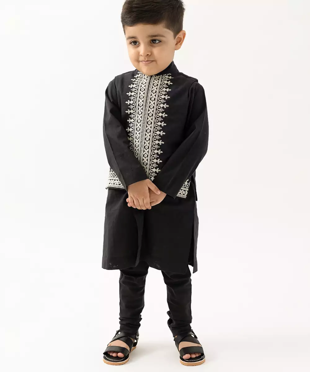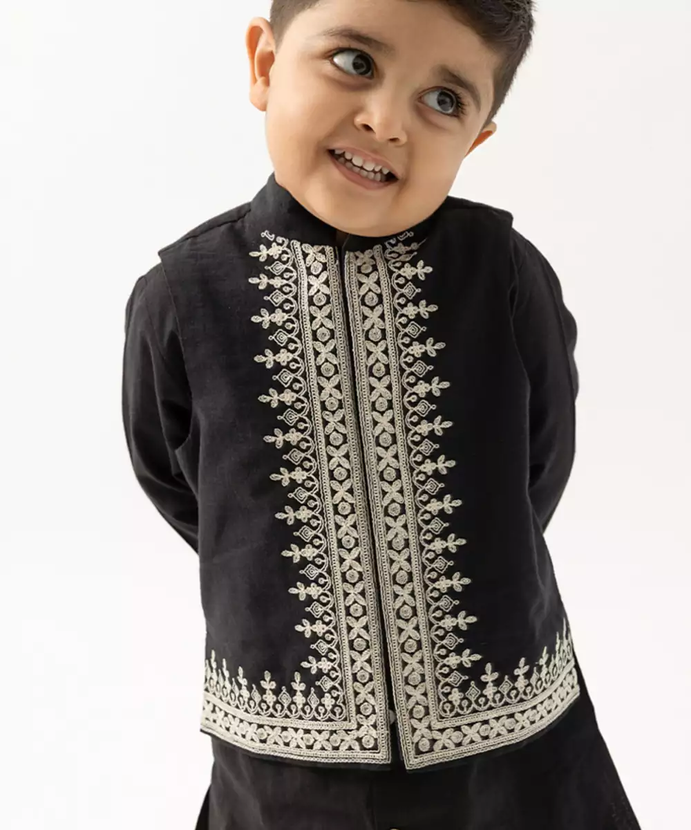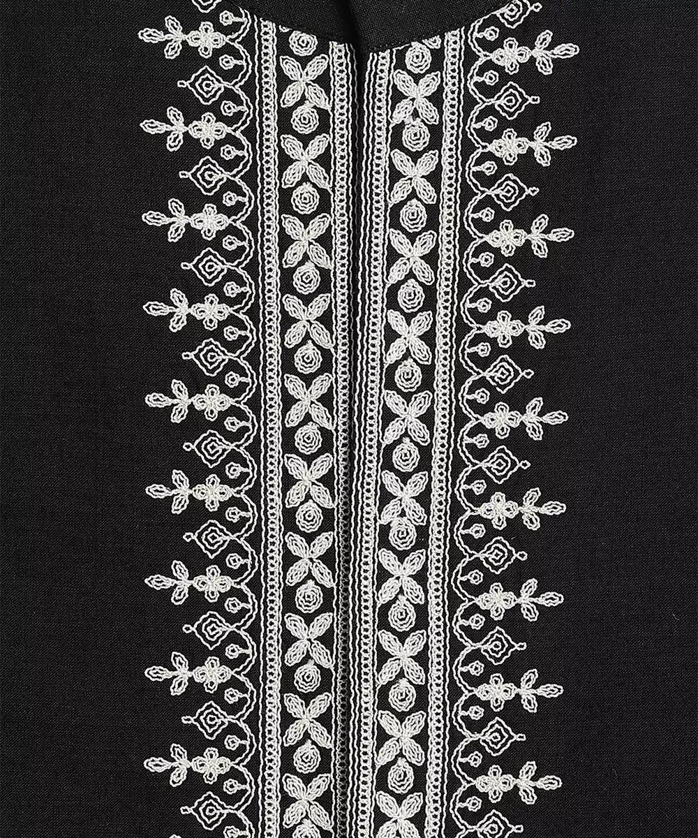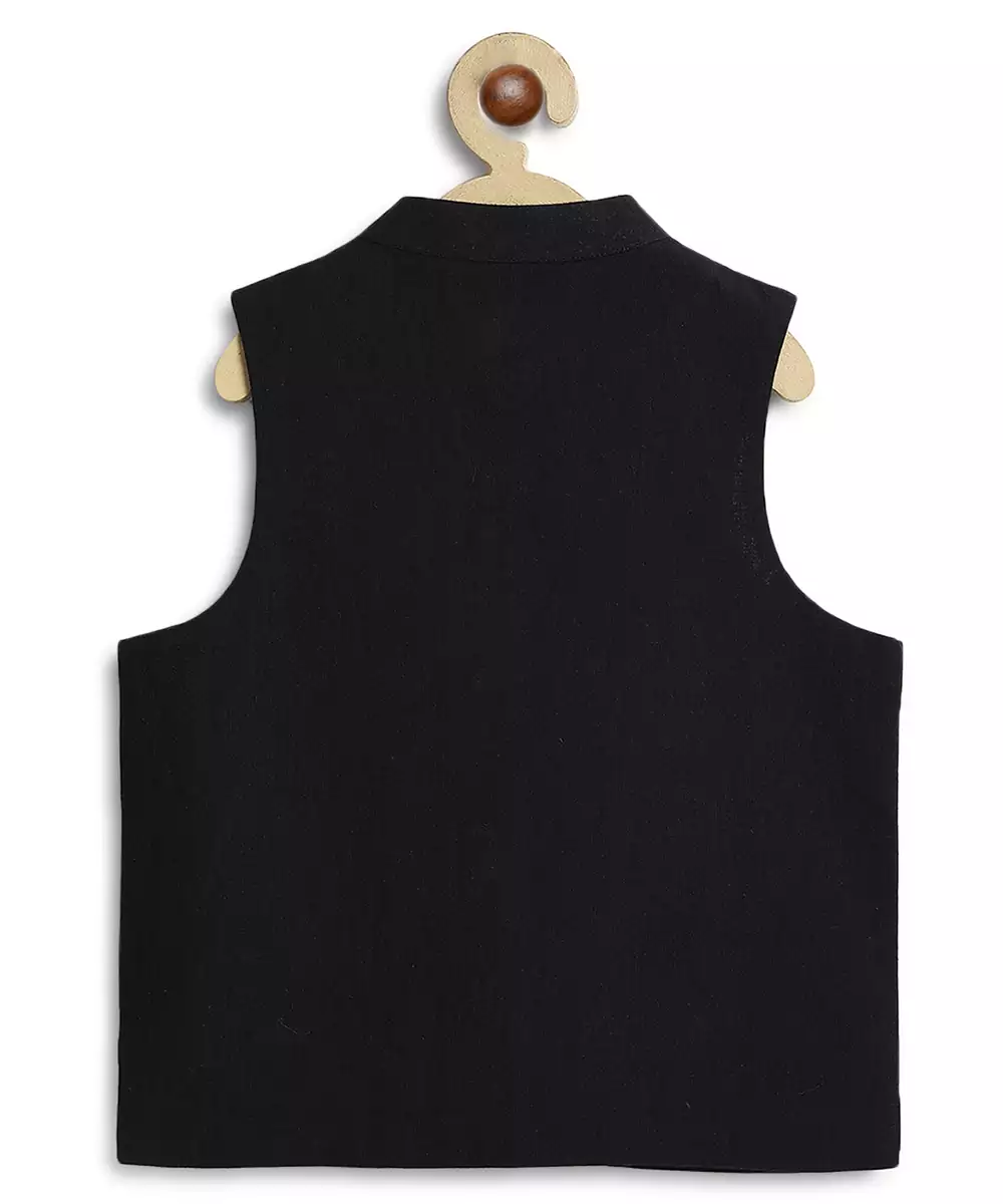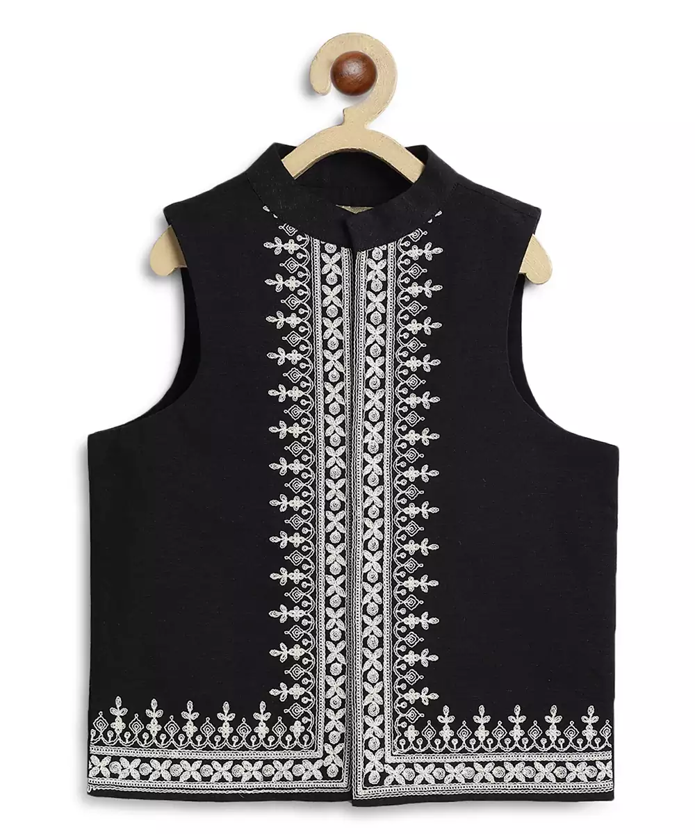 This Black Embroidered Cotton Nehru Jacket Exudes Refined Elegance With Its Structured Silhouette And Intricate Detailing. Crafted From Breathable Cotton, It Offers Comfort While The Embroidery Adds A Festive, Sophisticated Touch. Perfect For Weddings, Celebrations, And Formal Occasions, It Layers Effortlessly Over Kurtas Or Shirts For A Polished, Traditional Look.