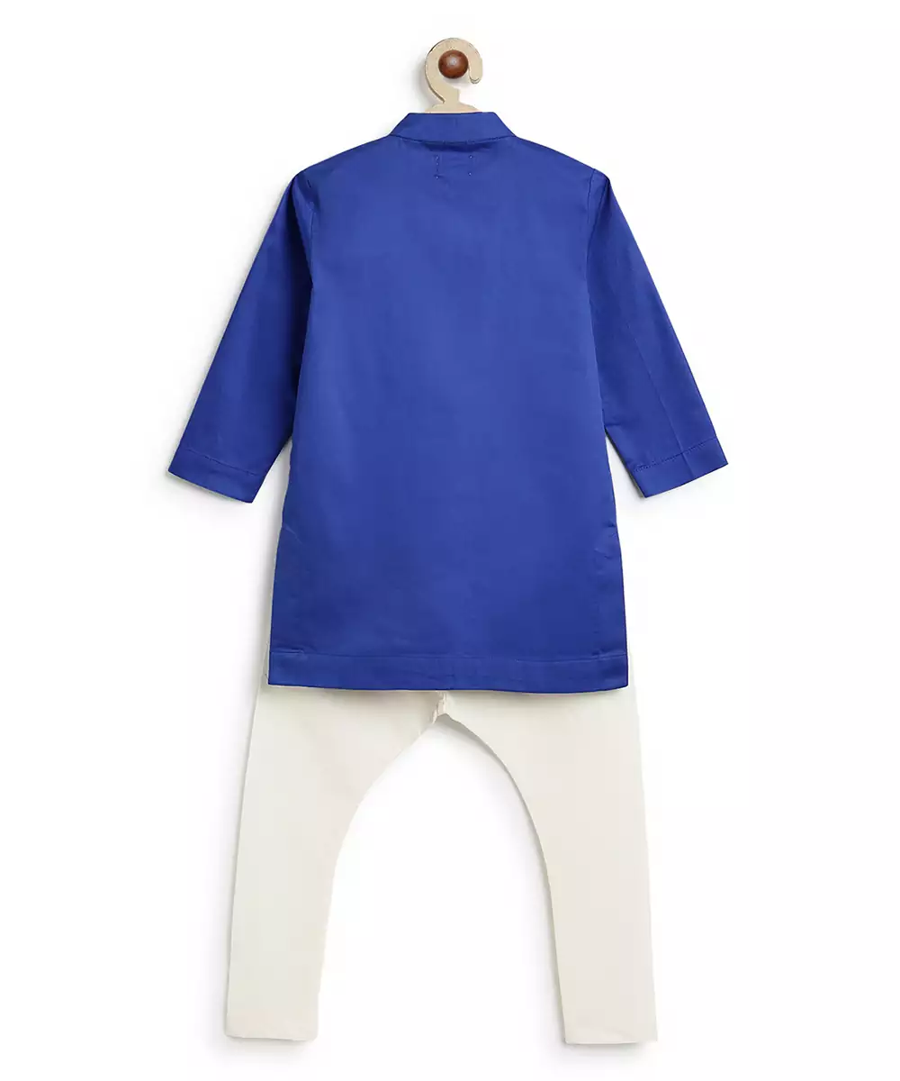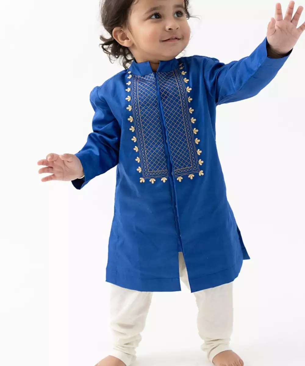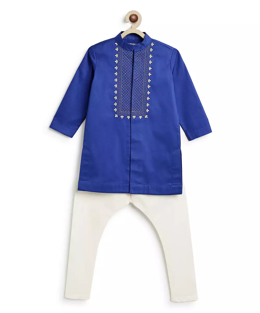 This Blue Embroidered Cotton Kurta Set Blends Traditional Craftsmanship With Modern Comfort. Featuring Delicate Embroidery, It Adds A Touch Of Elegance To Its Breathable Fabric. Paired With Matching Bottoms, It Is Perfect For Festive Occasions, Casual Gatherings, Or Day Events, Offering A Refined And Graceful Look.
