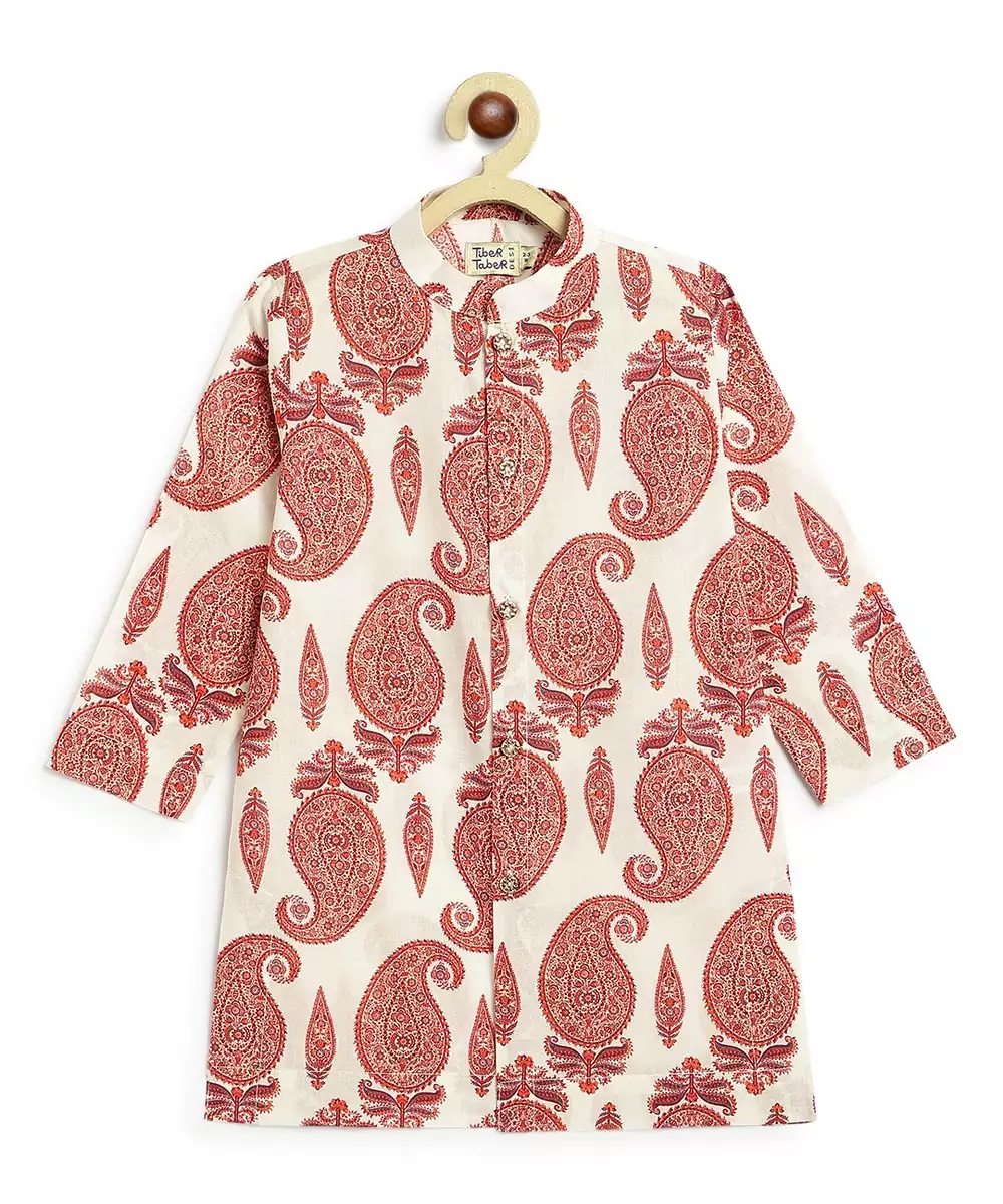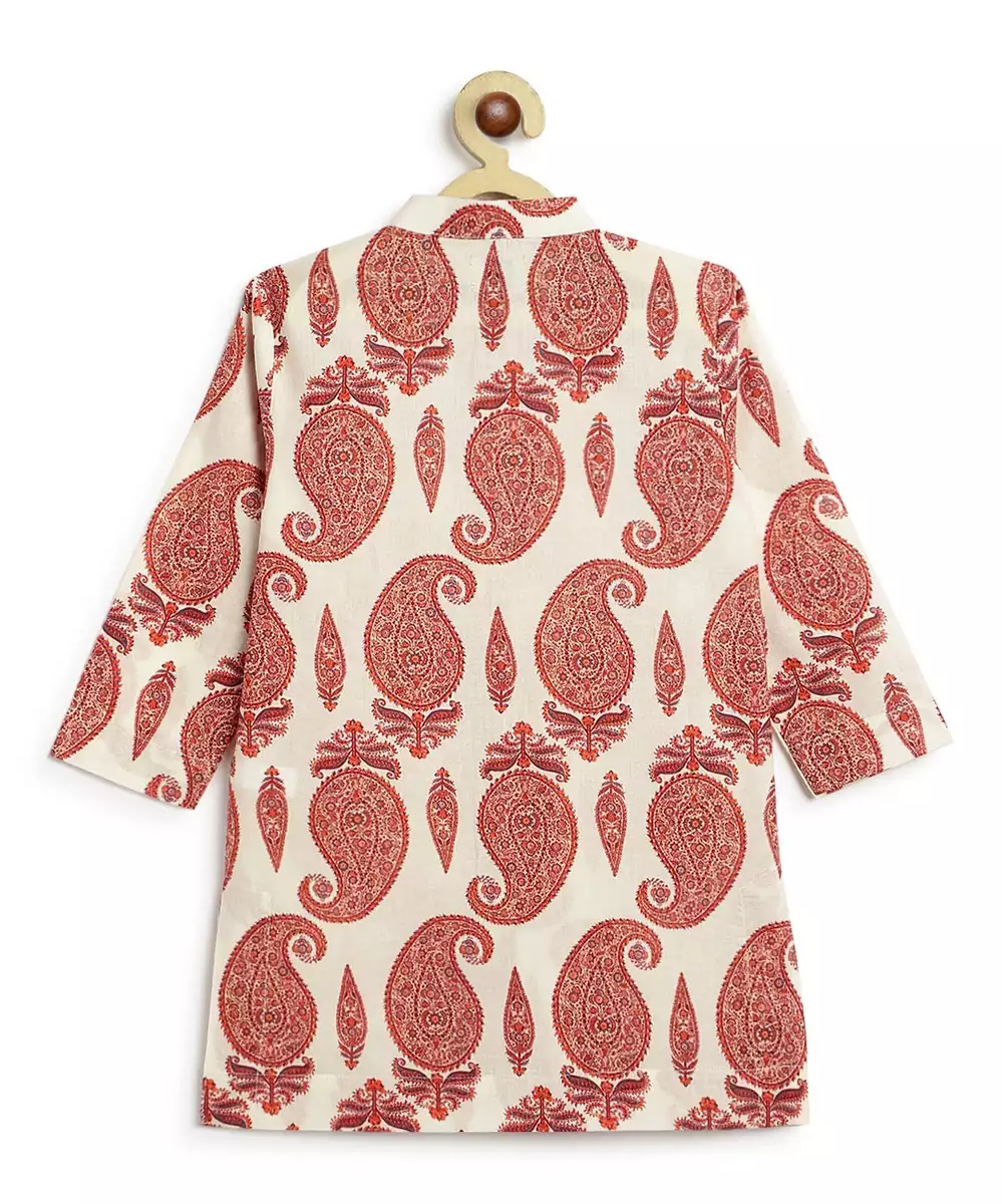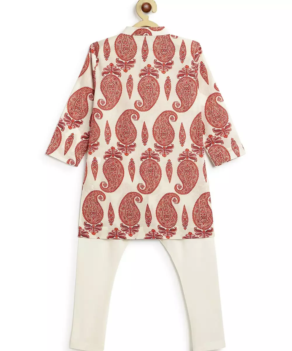 Elevate Your Little One’s Festive Style With This Elegant Cream Kurta Set Featuring A Timeless Paisley Print. Crafted From 100% Pure Cotton, This Outfit Is As Breathable As It Is Stylish, Perfect For Long Celebrations. The Intricate Paisley Motif Adds A Touch Of Heritage Charm, While The Classic Silhouette Keeps It Versatile For Both Traditional Functions And Family Gatherings.