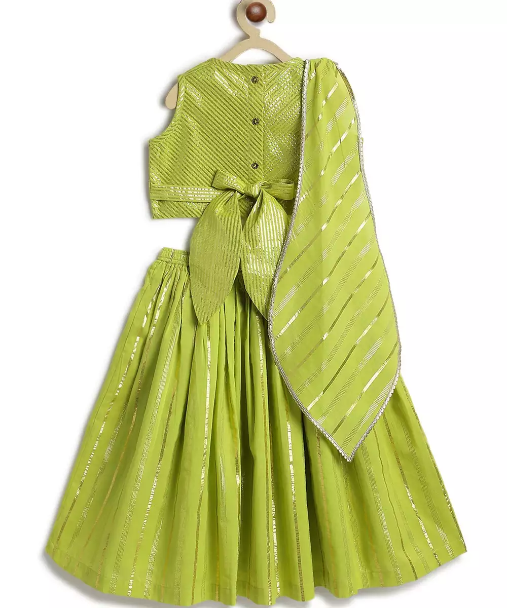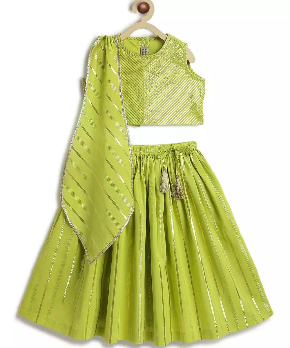 Every Little Girl Loves The Joy Of A Twirl, And This Lehenga Is Designed For Just That: Thanks To The Shoulder Tabs To Keep Her Dupatta In Place! Crafted In Soft Shimmering Cotton Lurex, This Set Is Light, Comfy, And Oh So Festive. With Its Easy Fit, Playful Tassels, And Sparkling Dupatta, It’s The Perfect Pick For Weddings, Pujas, Or Any Special Celebrations.