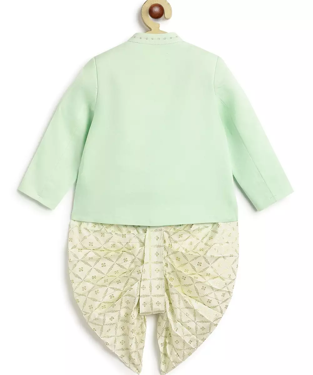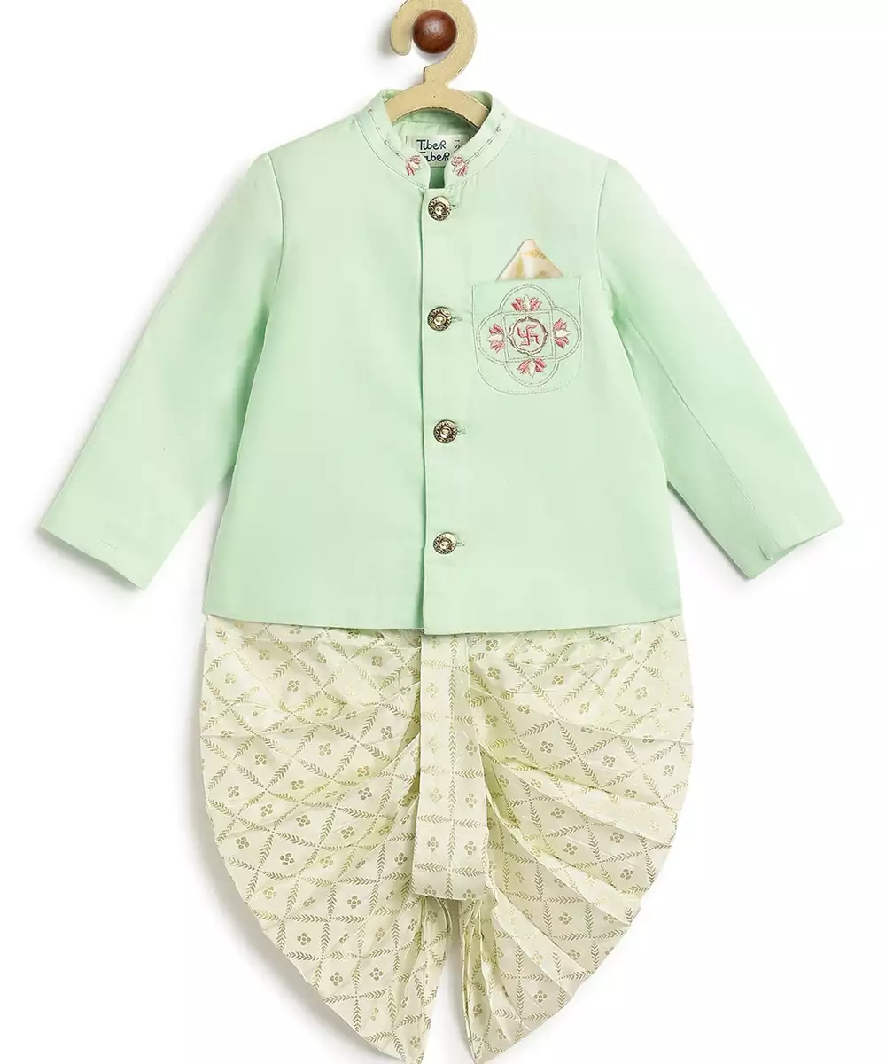 A Timeless Festive Pick, This Cream Kurta Set Is Designed For Dapper Camera Moments. The Kurta, Crafted In Soft Viscose, Features Rose Motif Foil Print And A Band Collar For A Formal Look. Paired With Classic Cotton Trousers, The Outfit Is Perfect For Poojas, Festivals, Or Family Celebrations. Brings Together Comfort And Charm.
