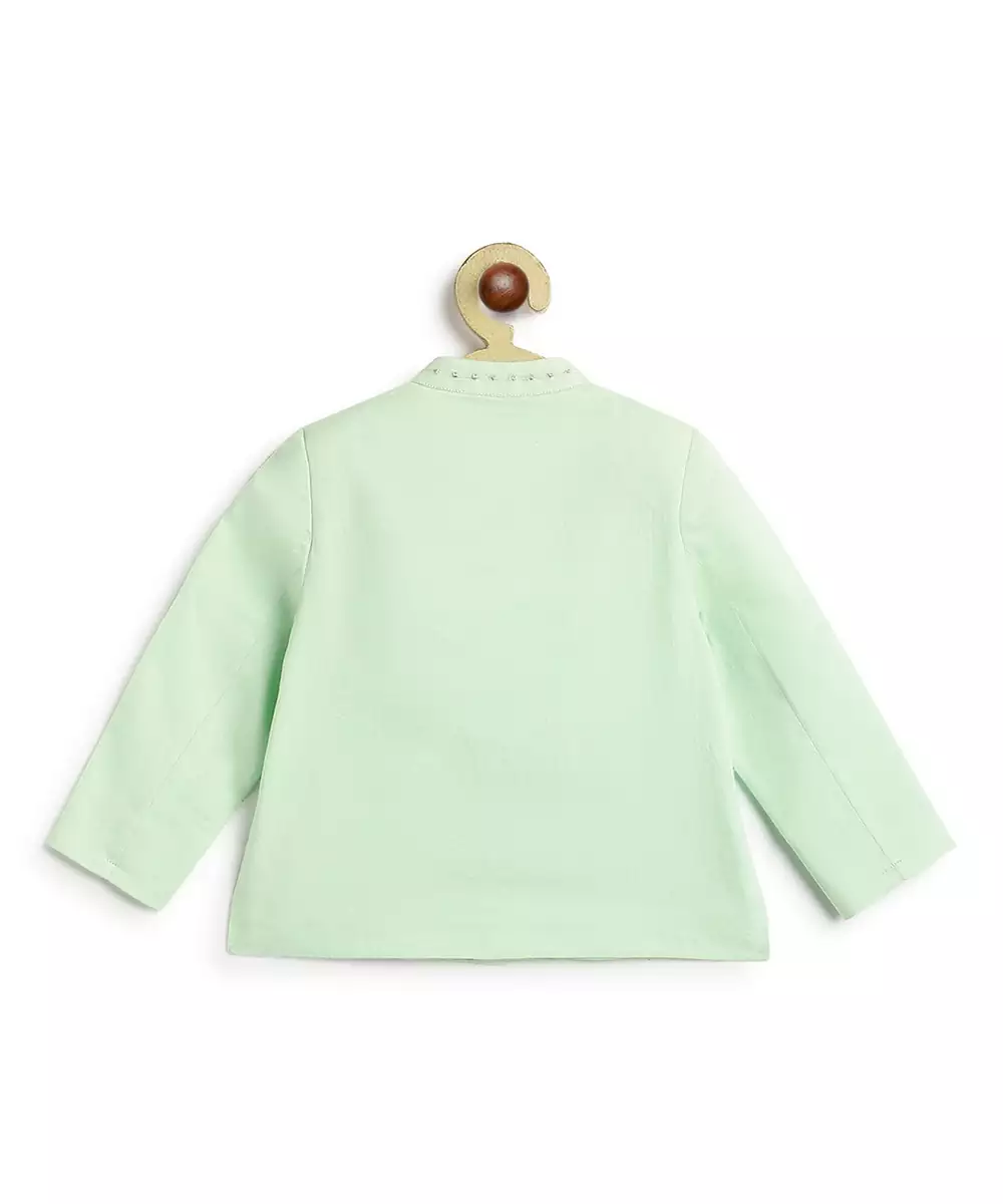 Transform Your Little Boy Into A Dapper Gentleman With This Elegant Set. Designed With Delicate Pink Rose Embroidery On A Soft Viscose Base, The Bandhgala Is The Perfect Formal Outfit For Big Days. Paired With Relaxed Cotton Pants, This Set Is Both Luxurious And Comfortable And Works Well For Weddings, Ceremonies, And Family Gatherings. Thoughtfully Tailored For Babies And Little Boys For Unrestricted Movement.