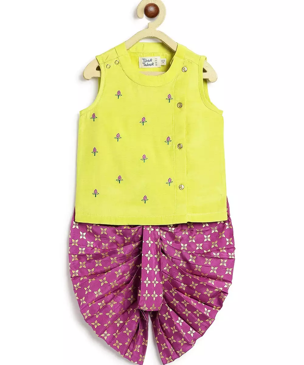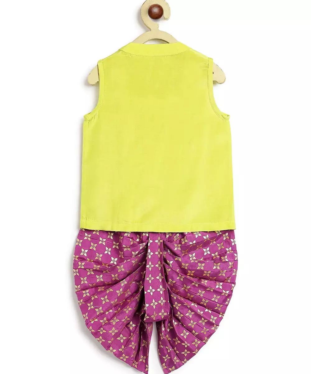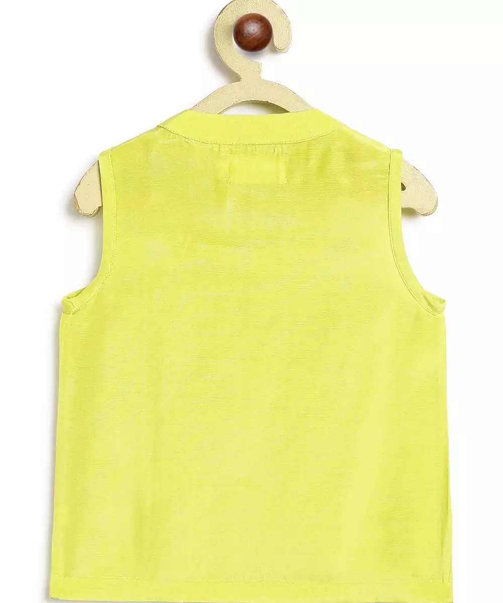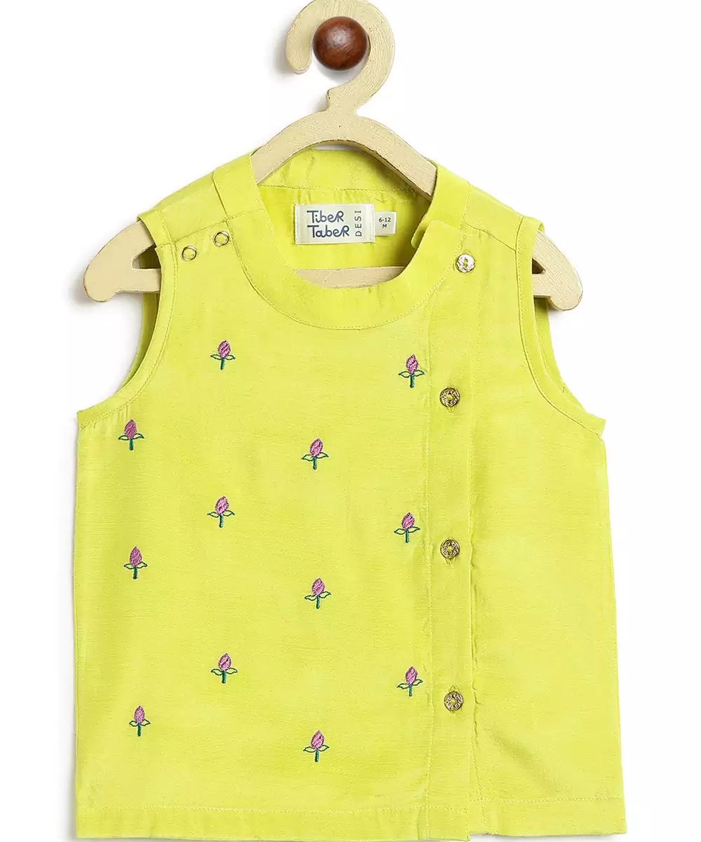 For The Little Gentleman Who Loves Color, This Floral Bundi Set Is All About Effortless Style. The Soft Viscose Cream Kurta Features Rose Motifs Foil Print Beautifully From Under A Cream Floral Bundi Tailored To Perfection. Comes With A Matching Pocket Square. Ideal For Weddings, Festivals, And Family Events.
