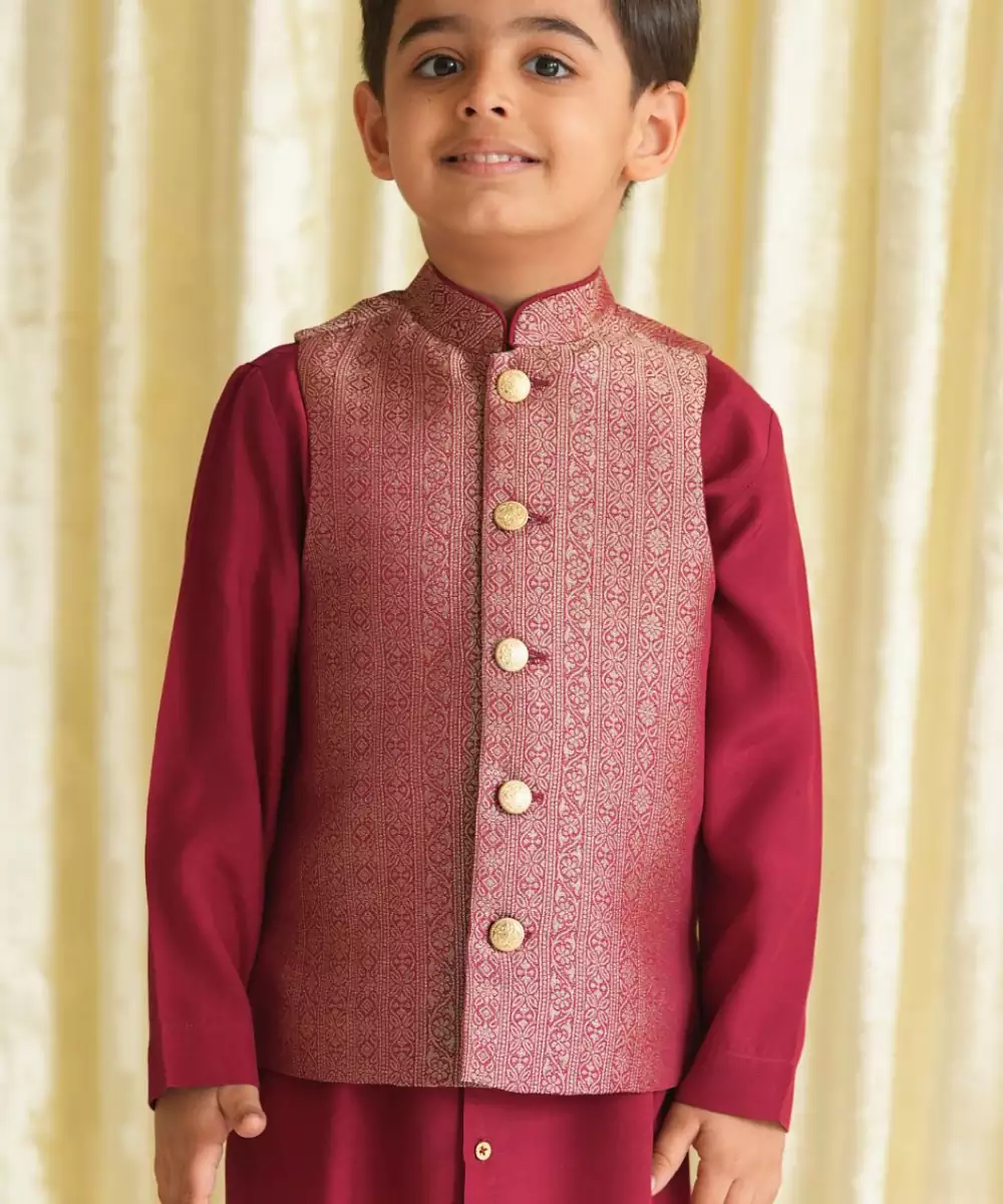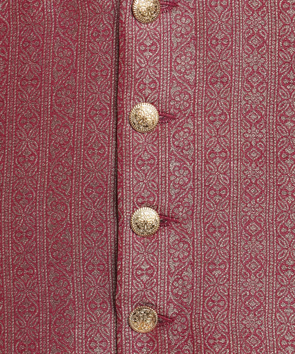 This Maroon Embroidered Brocade Nehru Jacket Exudes Regal Elegance And Classic Sophistication. Crafted From Rich Brocade Fabric, It Features Intricate Embroidery That Adds A Refined, Luxurious Touch. Perfect For Weddings And Festive Occasions, It Elevates Traditional And Formal Ensembles With Timeless Style.