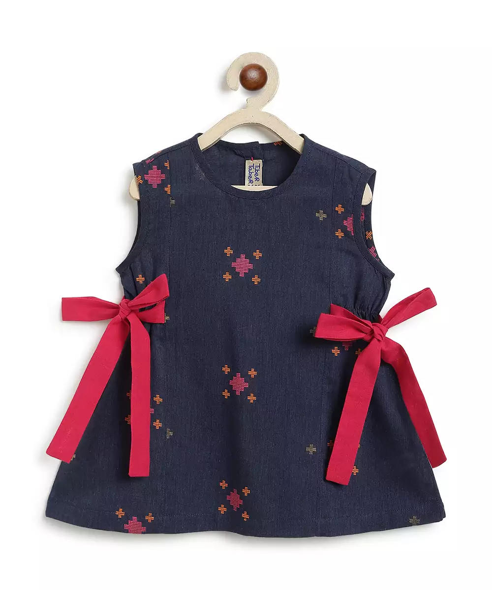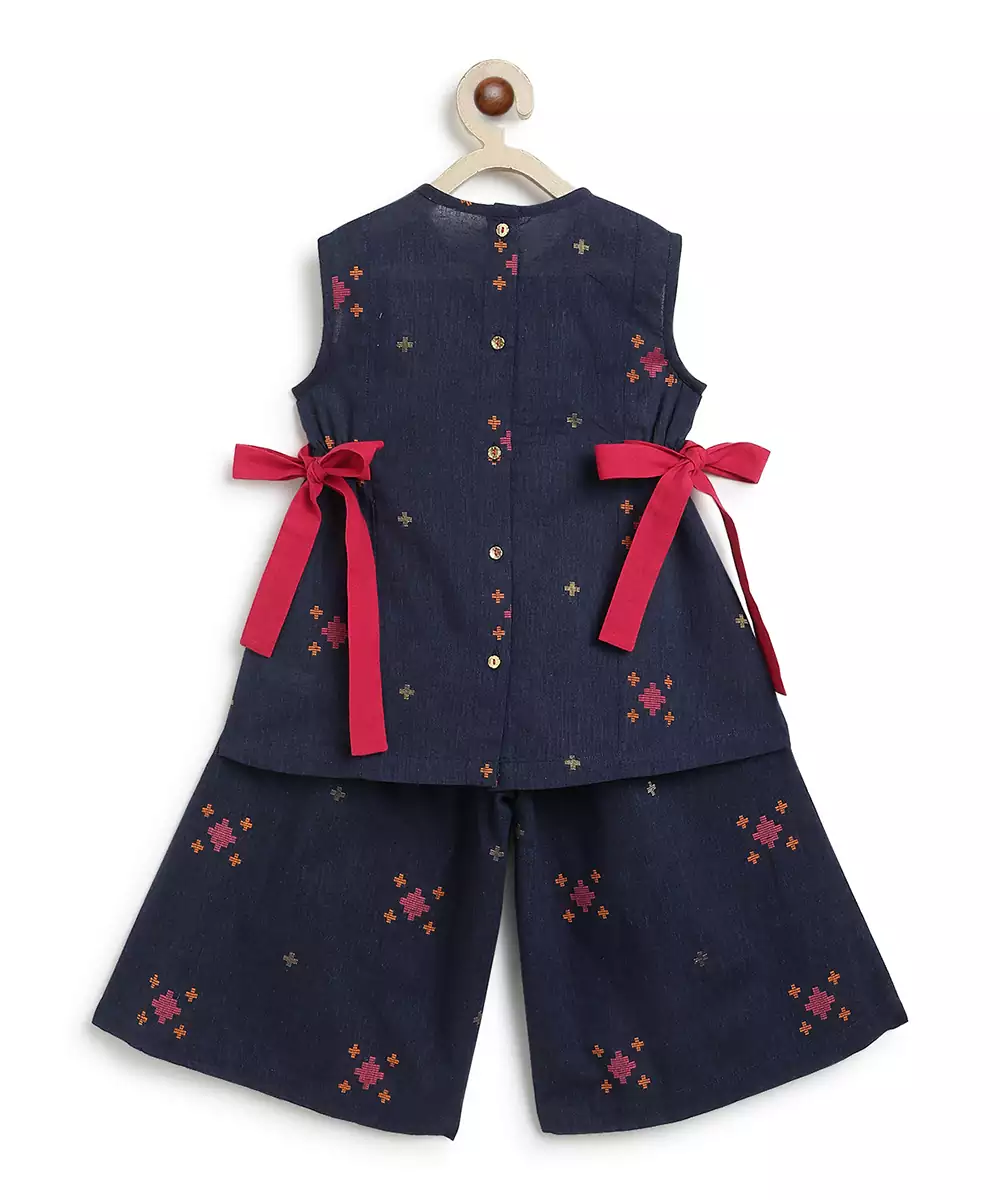 Navy Blue Jacquard Cotton Co Ord Set