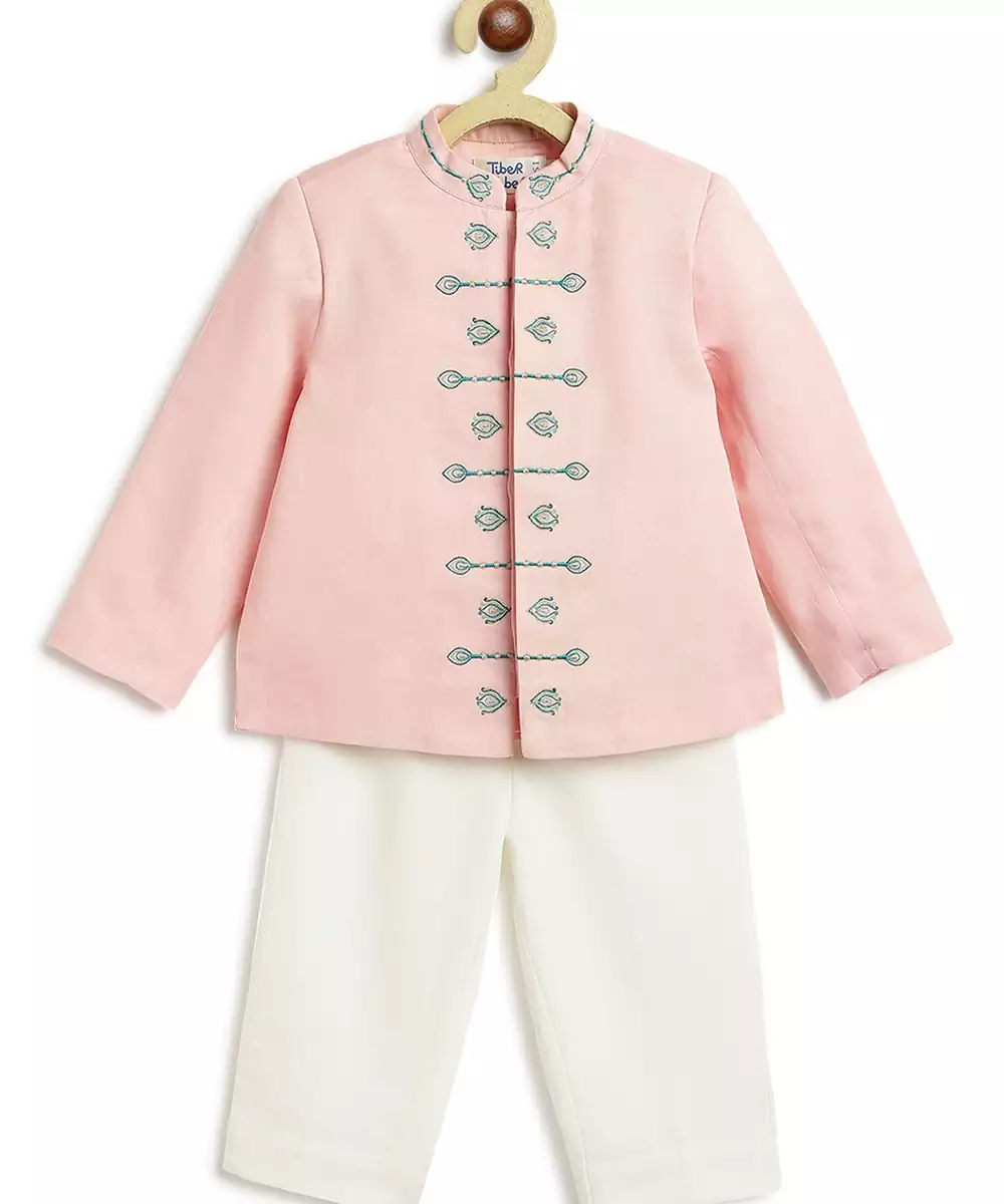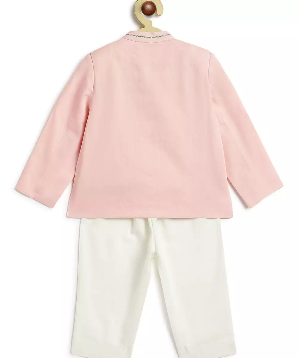 For The Little Gentleman Who Loves Color, This Floral Bundi Set Is All About Effortless Style. The Soft Viscose Cream Kurta Features Rose Motifs Foil Print Beautifully From Under A Cream Floral Bundi Tailored To Perfection. Comes With A Matching Pocket Square. Ideal For Weddings, Festivals, And Family Events.